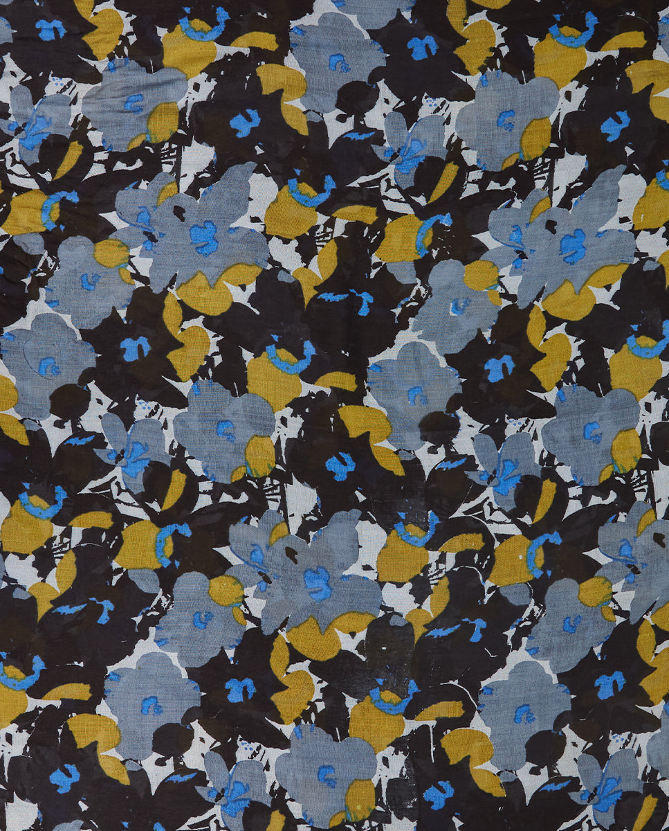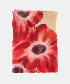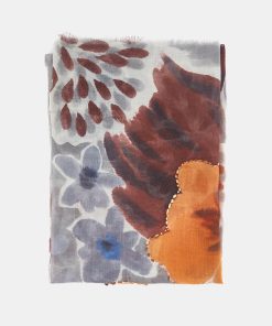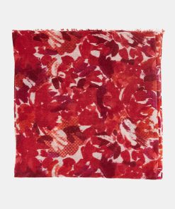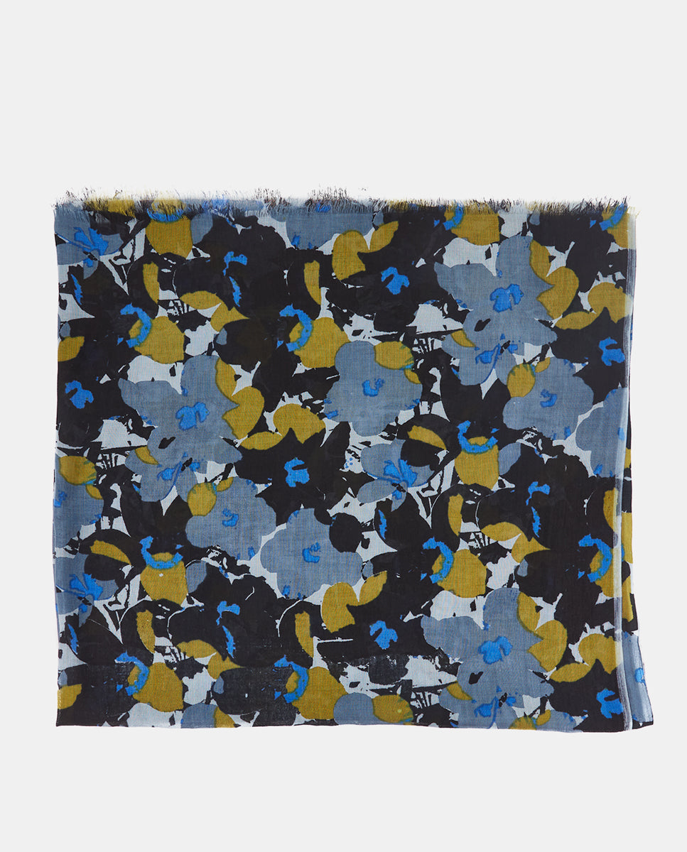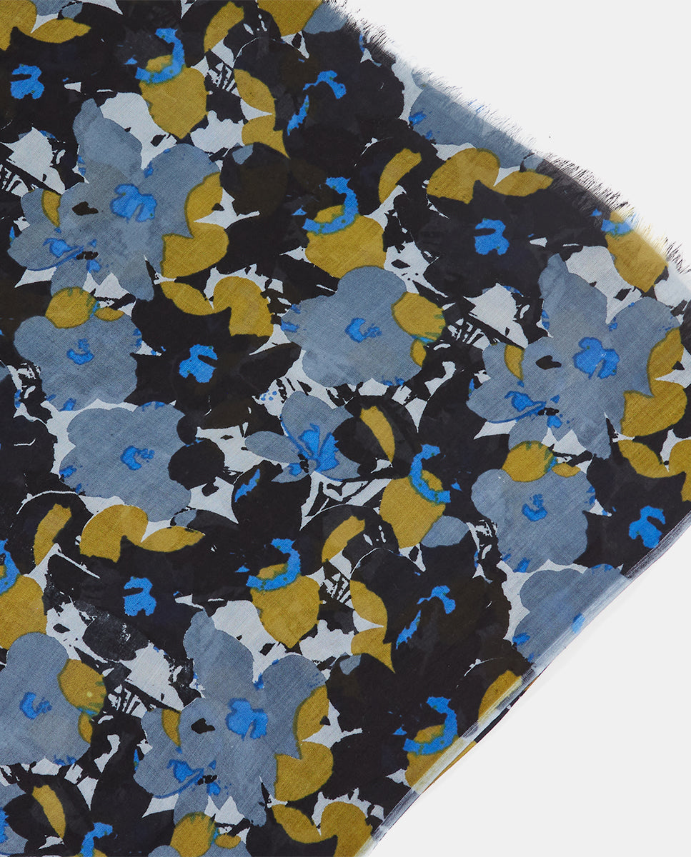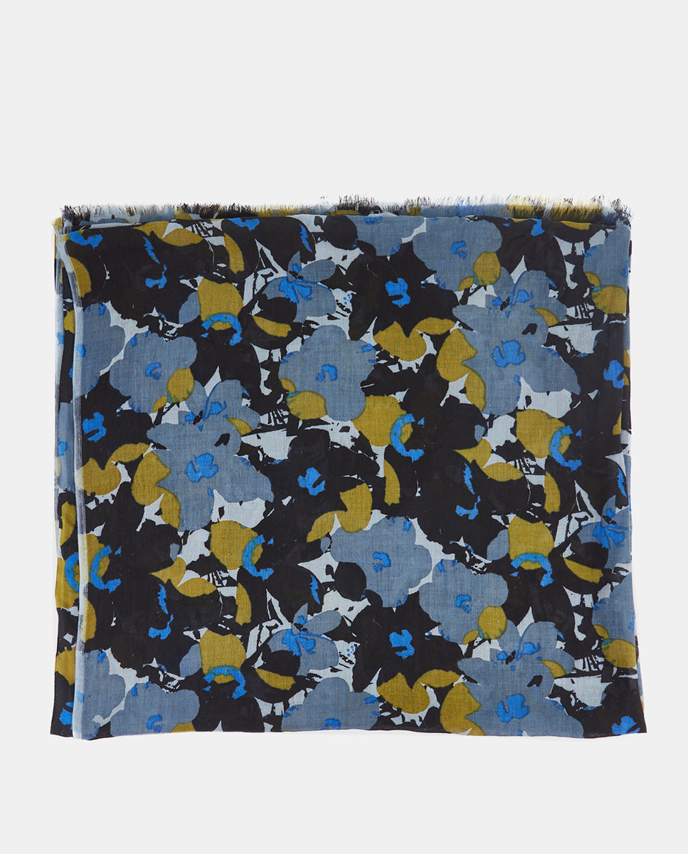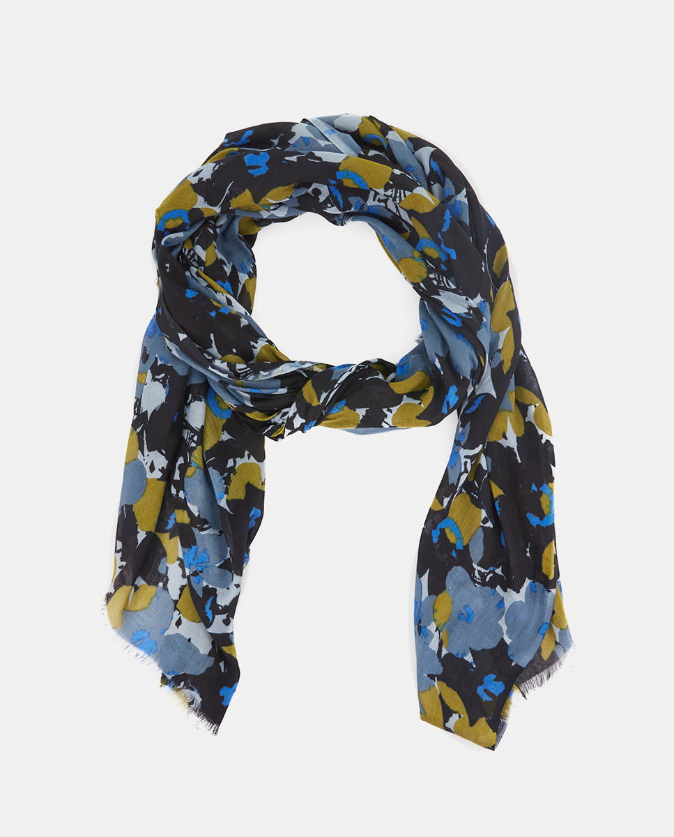 Soft, lightweight wool scarf with a floral print. A versatile and functional accessory, ideal for any occasion. Frayed edges.