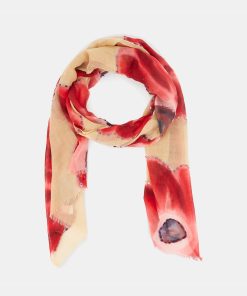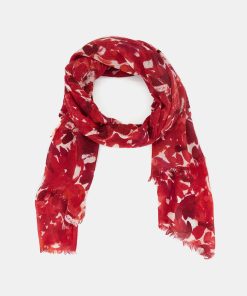 Soft, lightweight wool scarf with a floral print. A versatile and functional accessory, ideal for any occasion. Frayed edges.