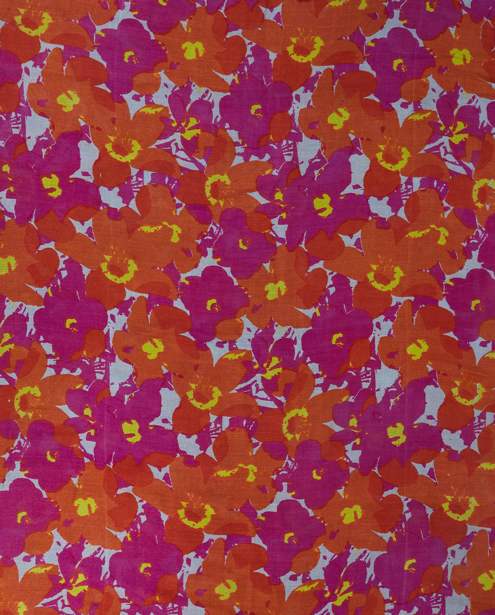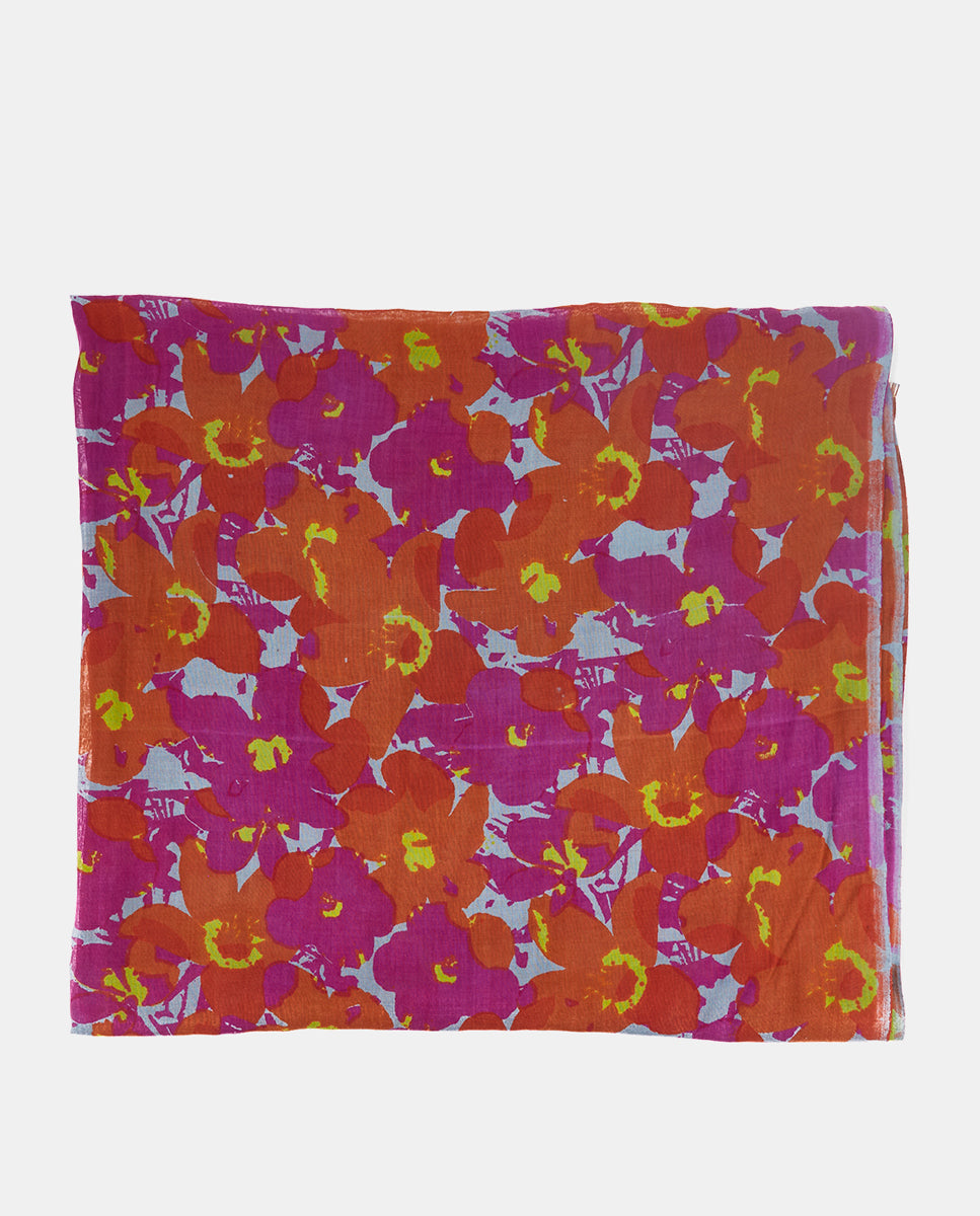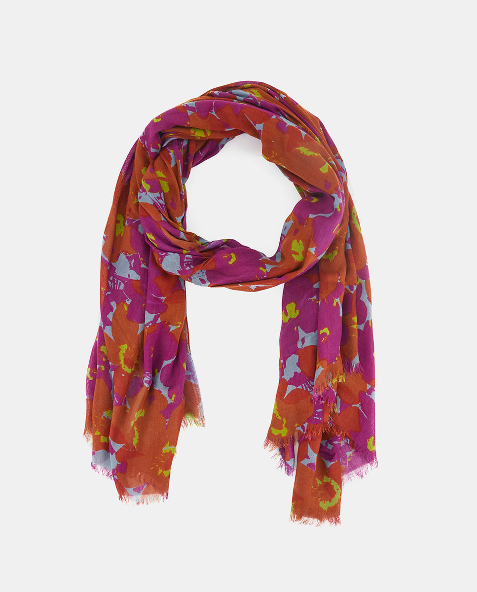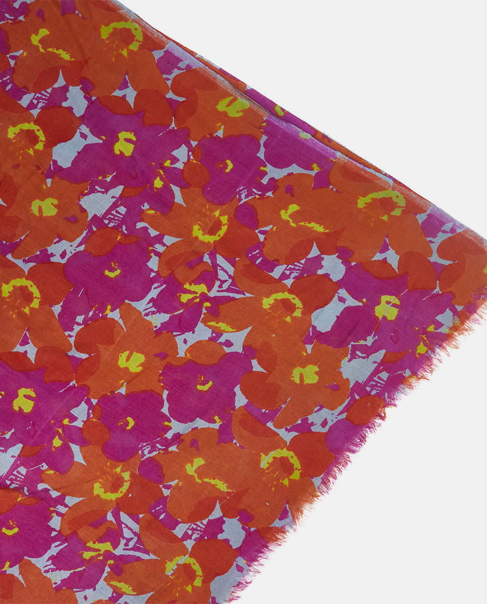 Soft, lightweight wool scarf with a floral print. A versatile and functional accessory, ideal for any occasion. Frayed edges.