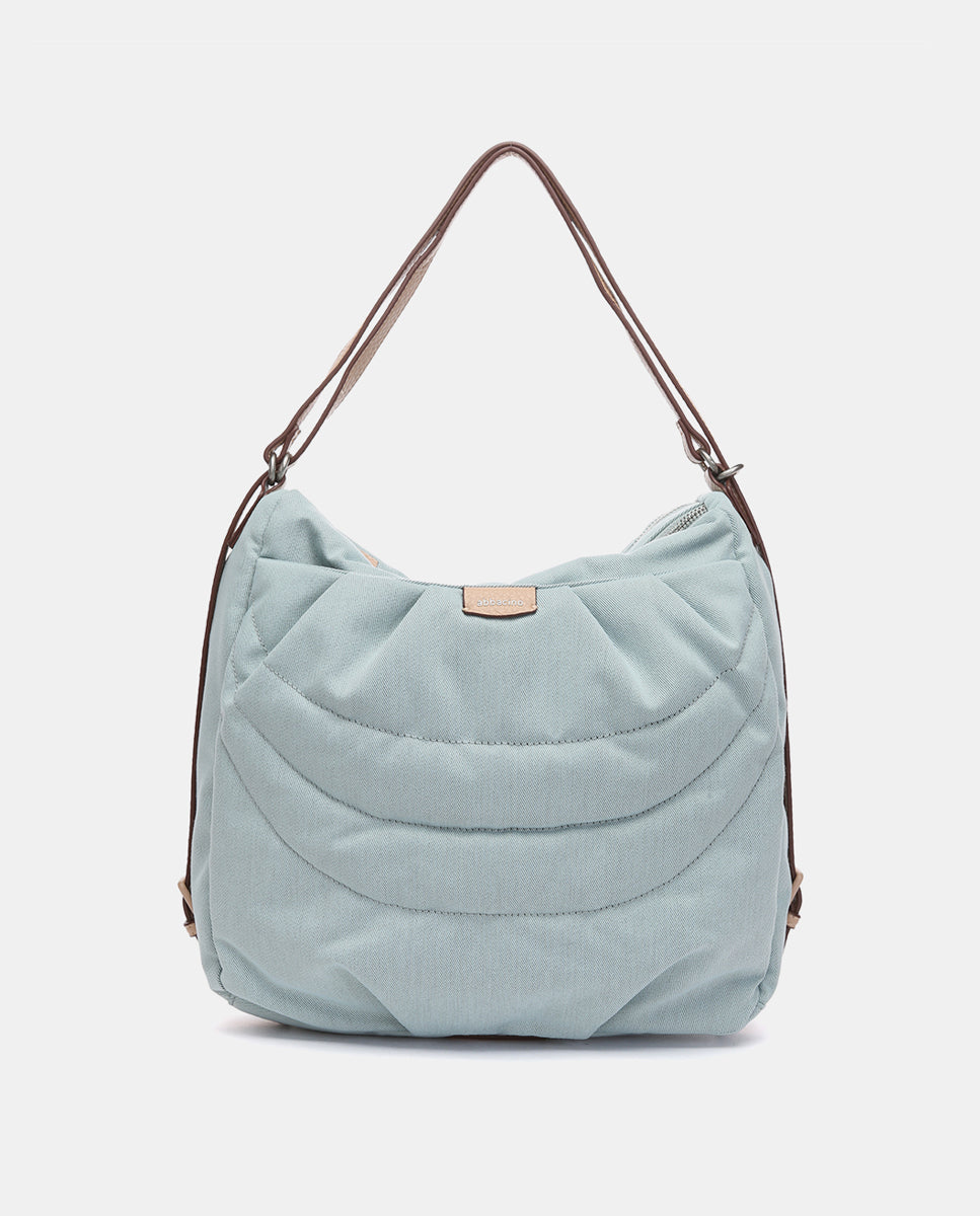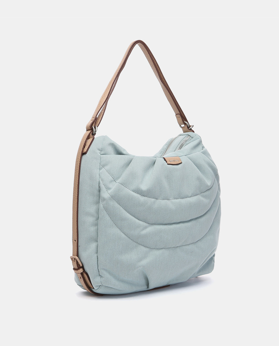 Women’s convertible backpack made from recycled and padded fabrics. A design dyed in summery colors, perfect for matching with your seasonal outfits. Casual and informal in style, this spacious bag allows you to carry your essentials wherever you go. Its main features are: