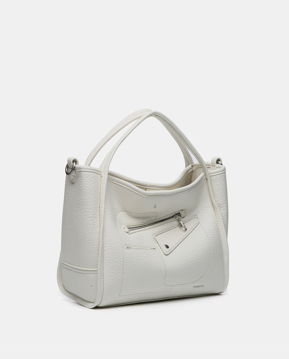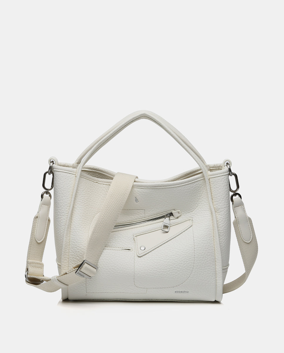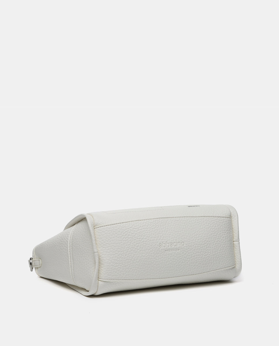 Handbag made from recycled materials. A multi-pocket model with simple and minimalist lines, perfect for daily use and set to become a staple during the spring and summer months. Its main features are: