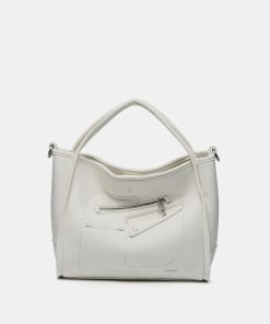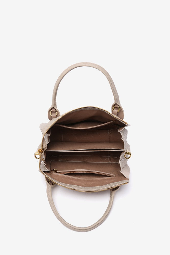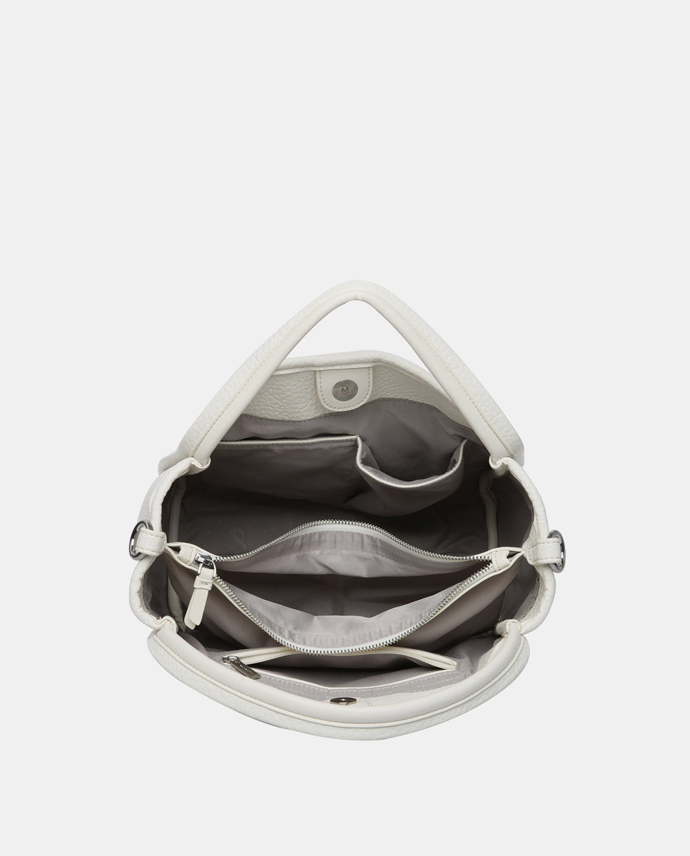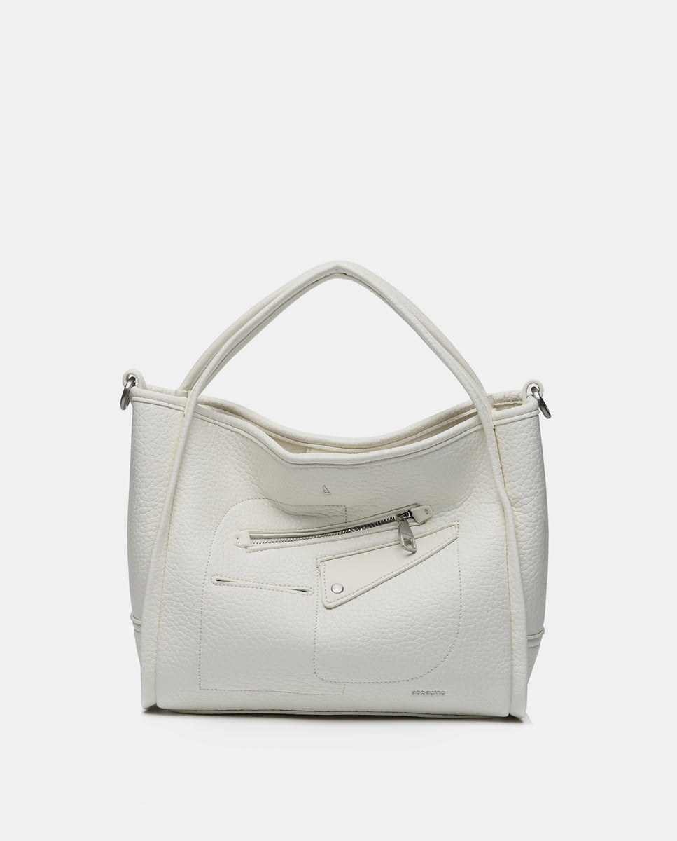 Handbag made from recycled materials. A multi-pocket model with simple and minimalist lines, perfect for daily use and set to become a staple during the spring and summer months. Its main features are: