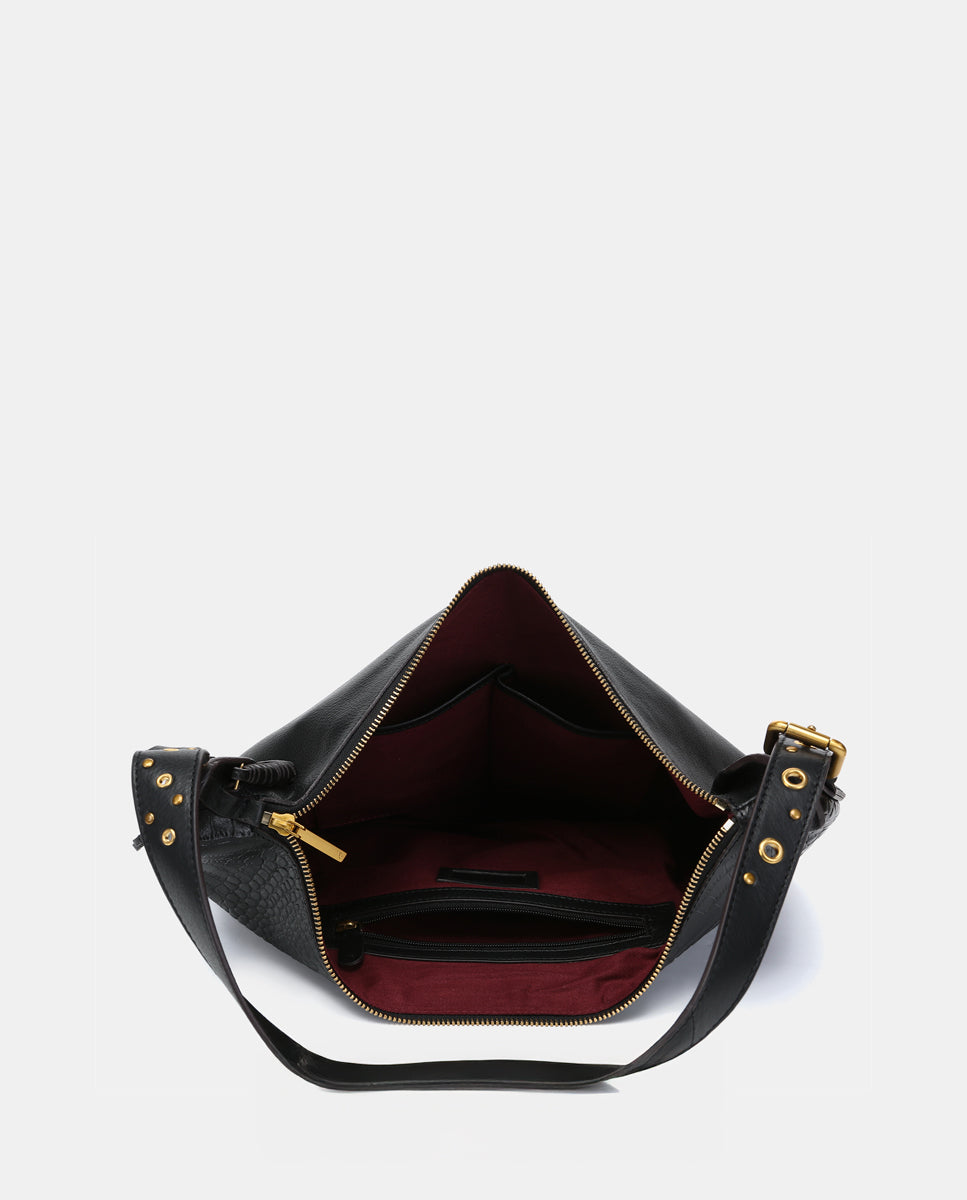 • Adjustable handle decorated with gold hardware for a sophisticated touch.