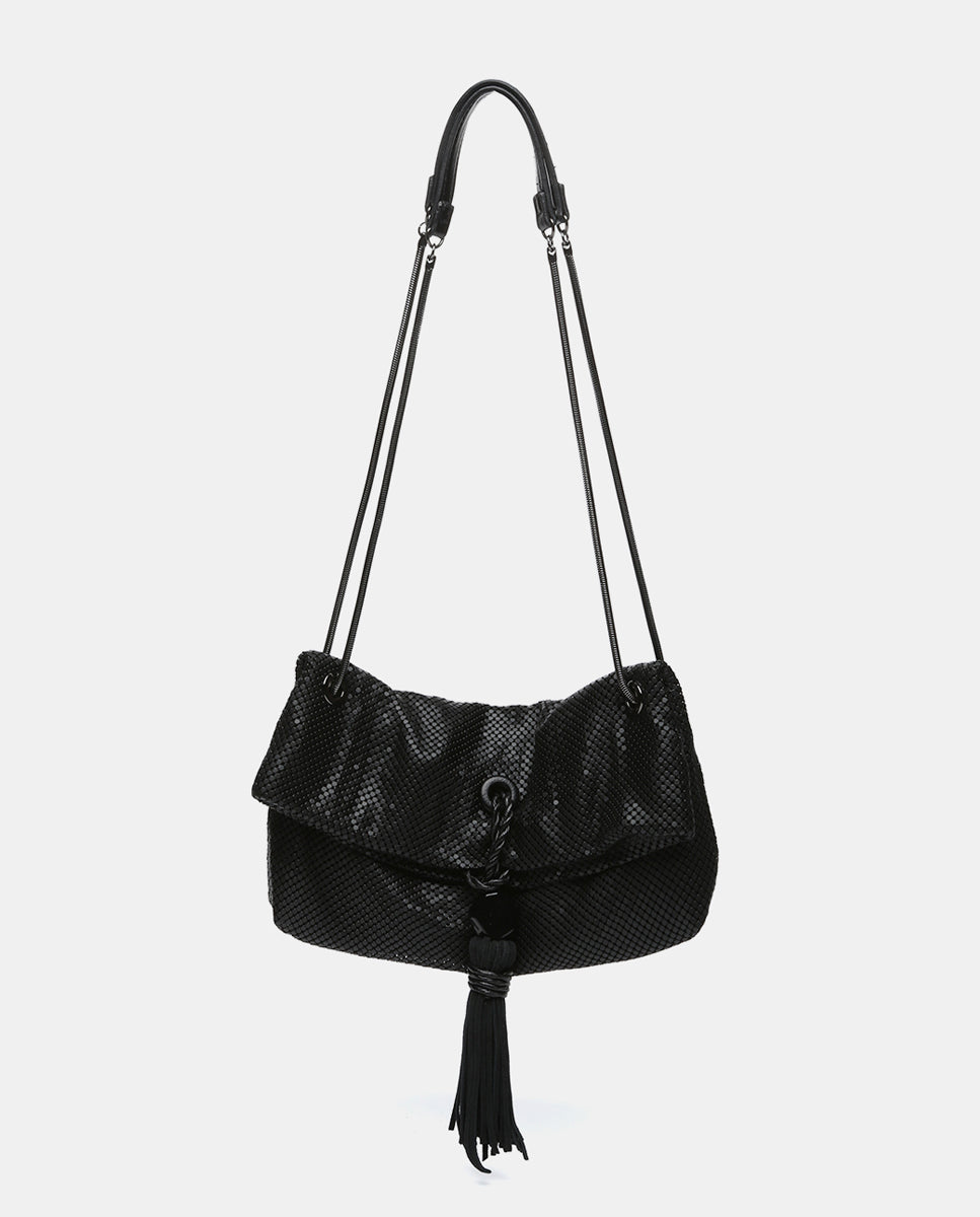 An original and bold party bag that will make you shine wherever you go. This model is an ideal option for creating unique looks that won’t go unnoticed. A rectangular design made with metallic mesh, perfect for special occasions. Its main features are: