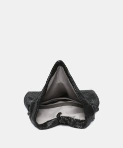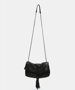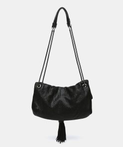 • Its metallic handles are adjustable, allowing them to be used as shoulder straps or a crossbody strap.