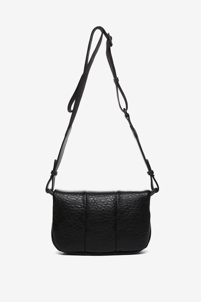 Women’s crossbody bag made from recycled materials. A design that features a lovely gathered front and the rustic texture of its material. Its main features are: