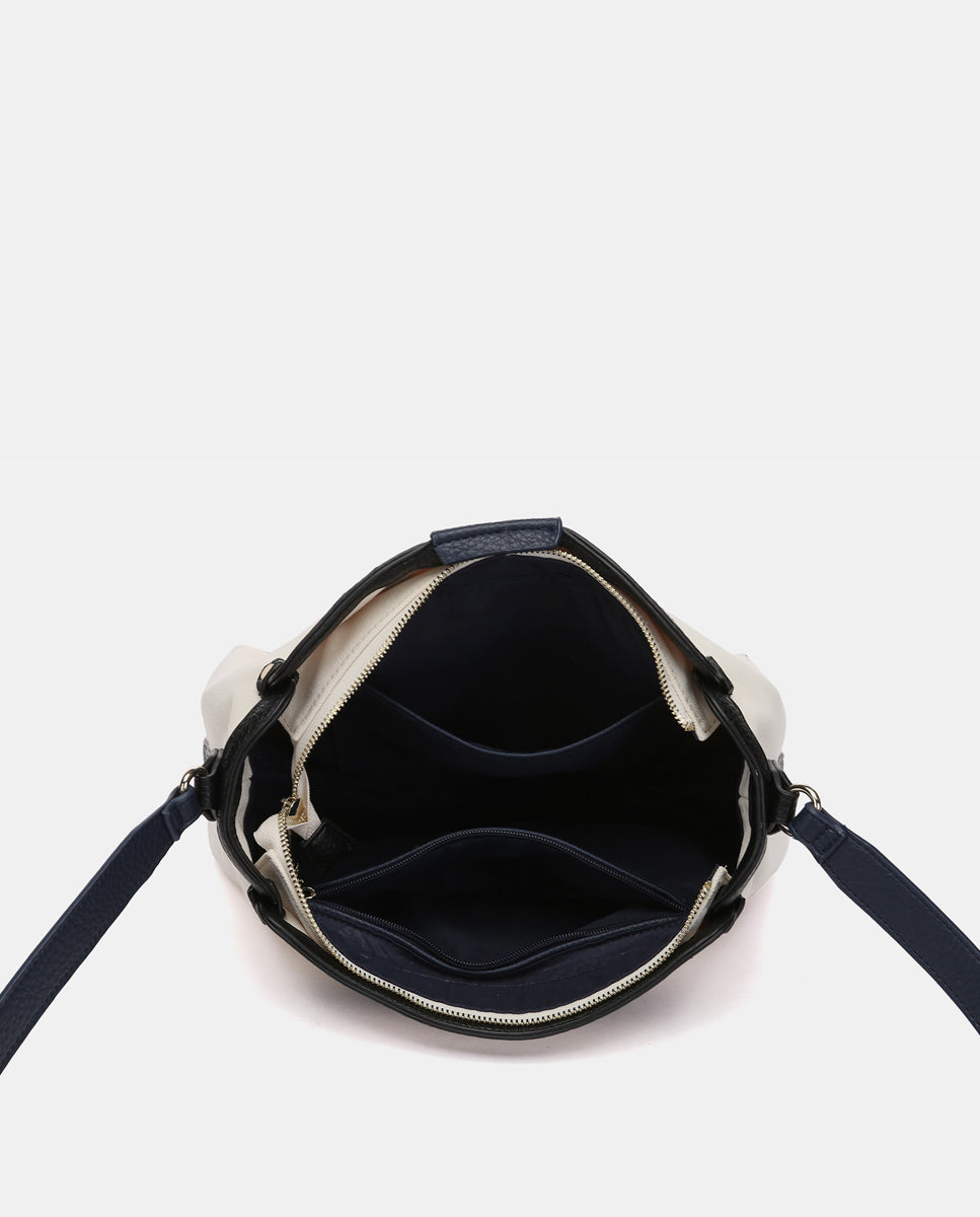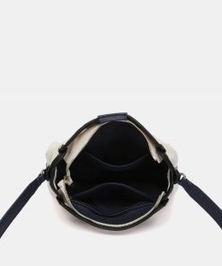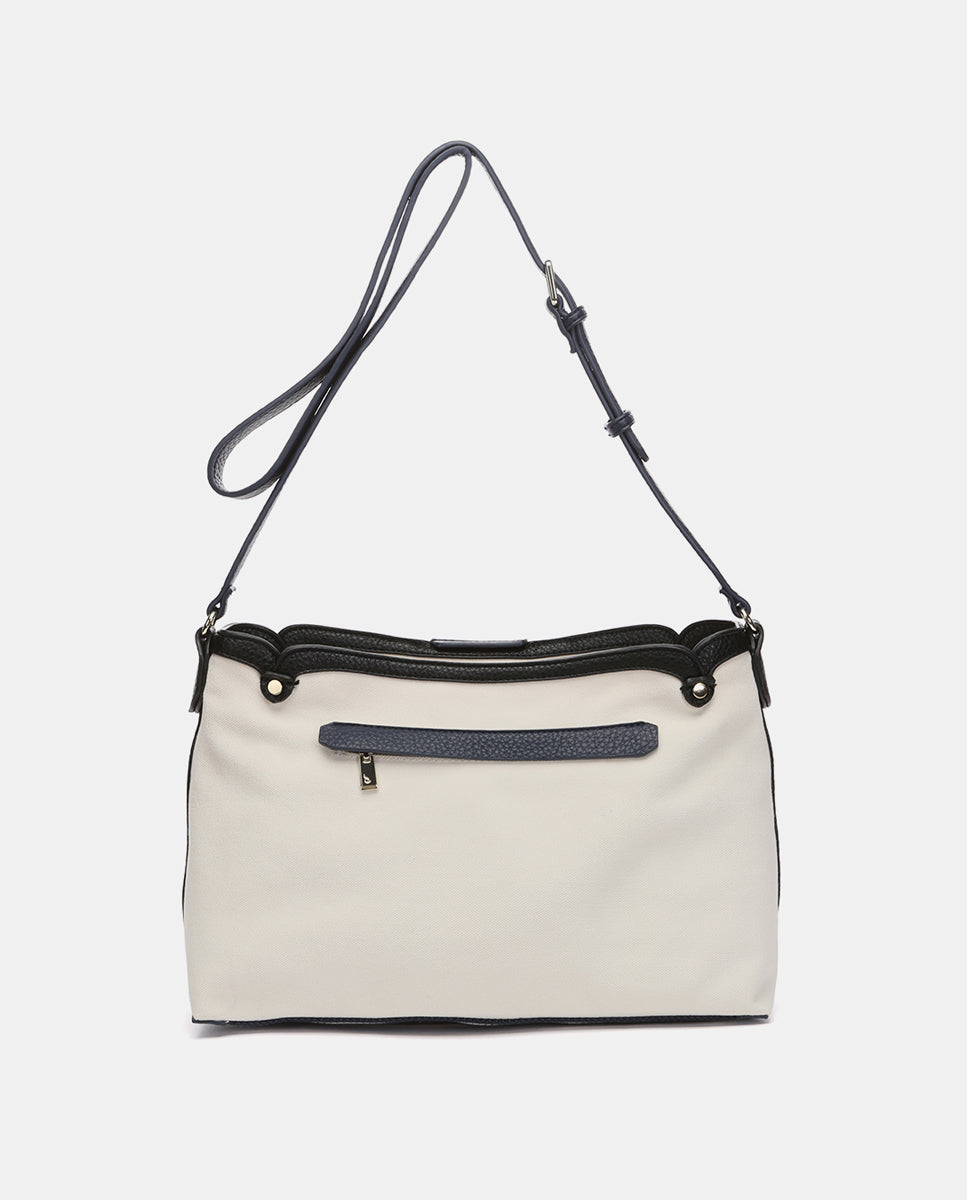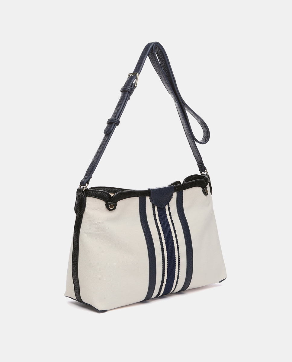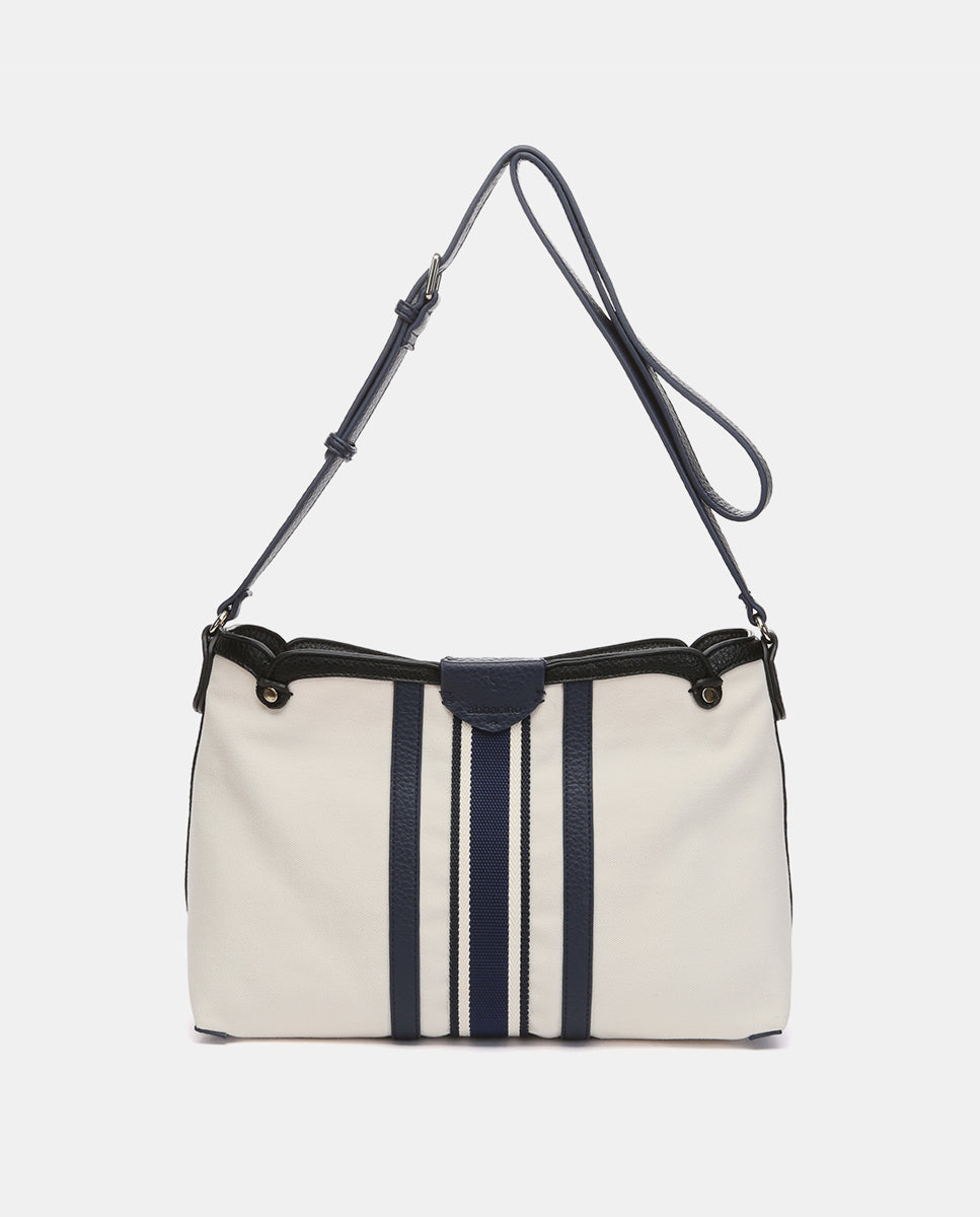 Crossbody bag for women made from recycled fabrics. A fluid and lightweight design with a clear Mediterranean influence and a strong navy style. Casual in nature, it will become the perfect companion for spring and summer days. Its main features are: