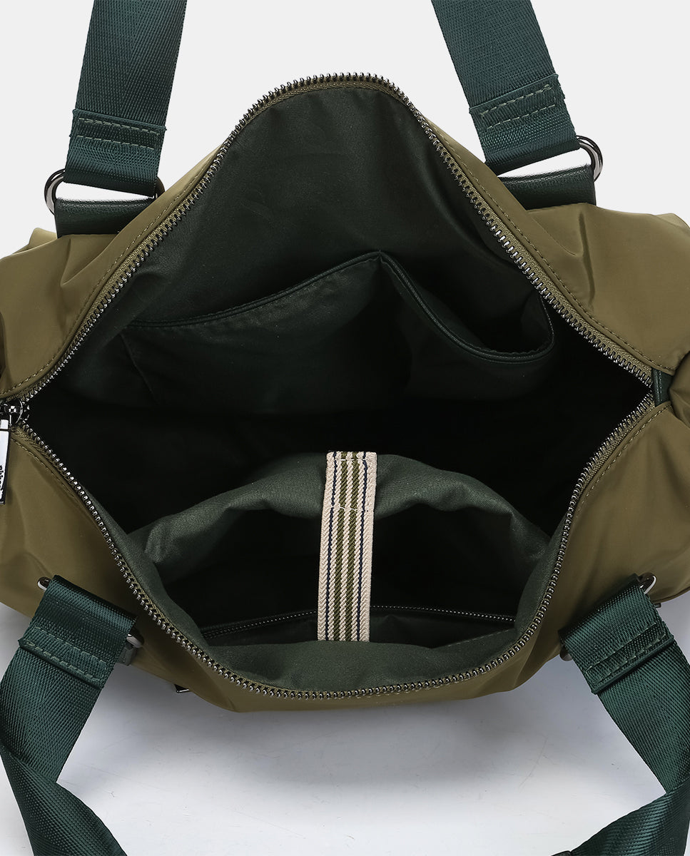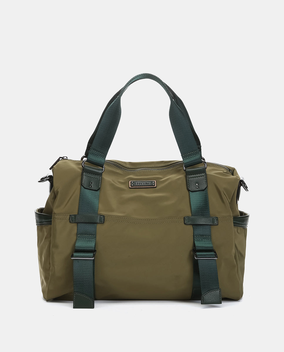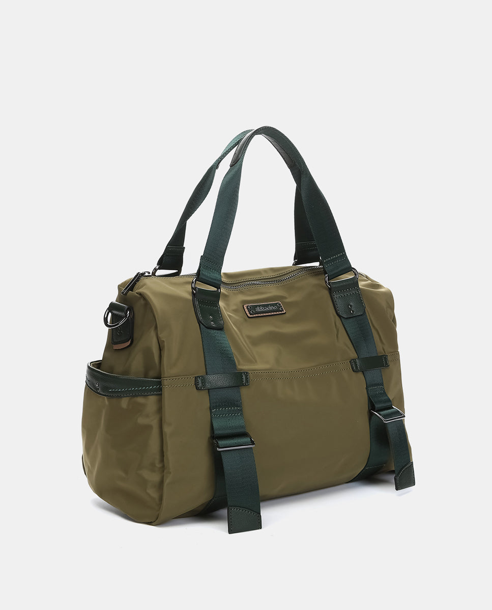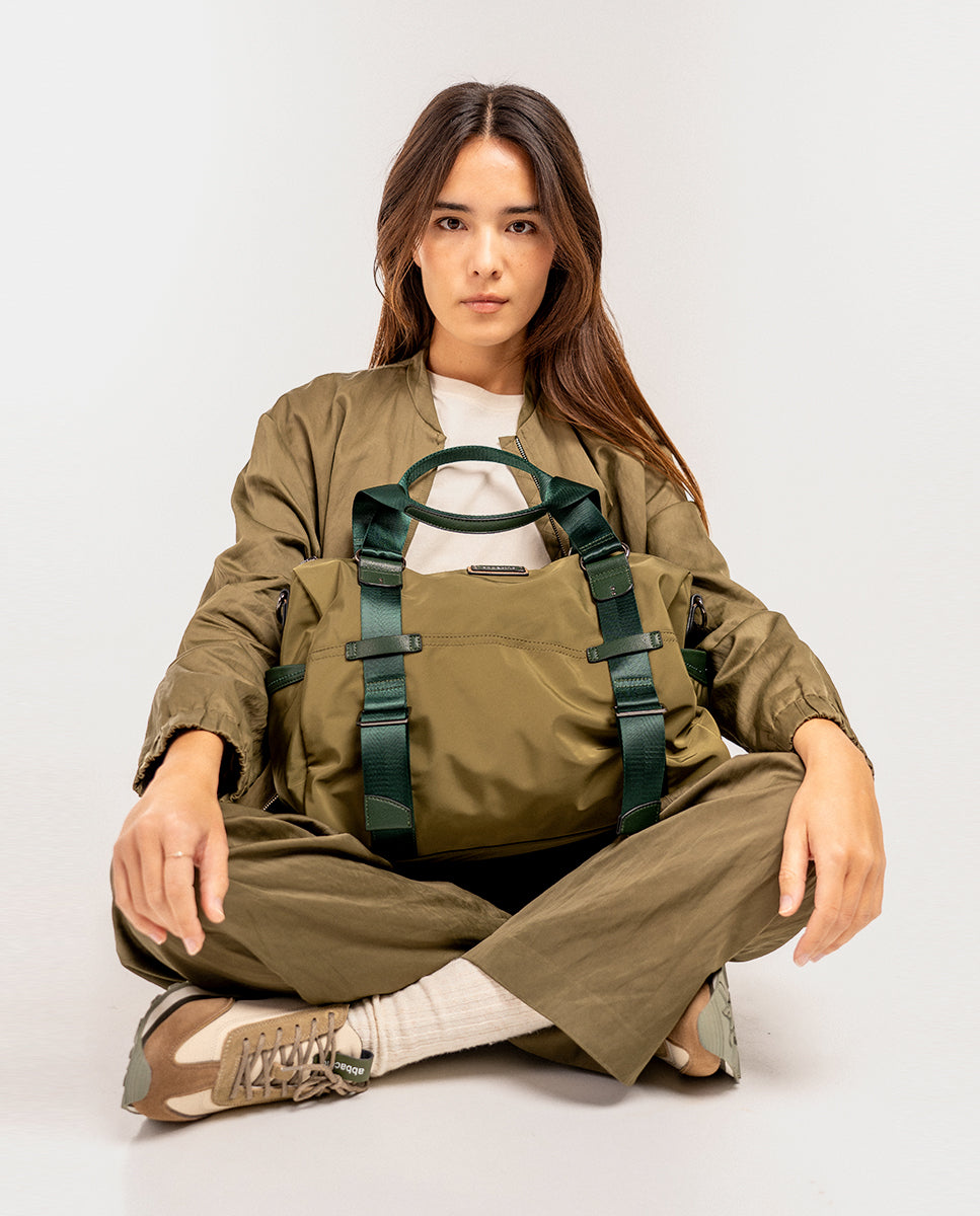 Women’s tote-style shoulder bag made from recycled fabric with a subtle satin finish. It features a practical and functional design in a sporty, casual style, ideal for any occasion, from the office to the gym. Versatile and elegant, it’s designed for those seeking comfort and style. Its main features are: