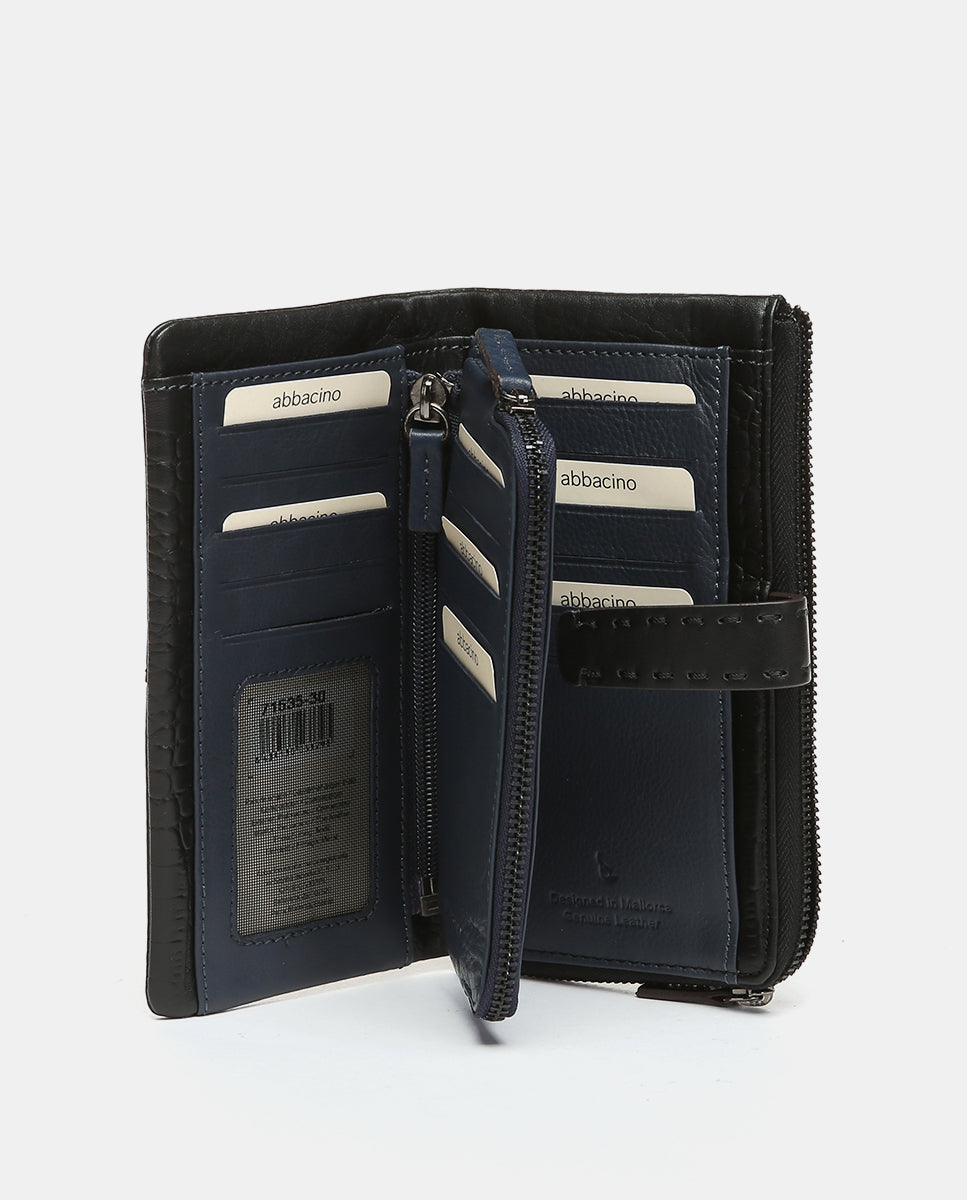 • Interior with multiple card slots, a bill compartment and a removable coin purse.