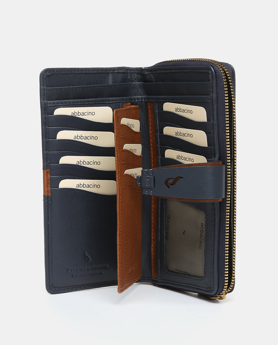 • Large interior compartments to organize cards (one especially for ID) and bills.
