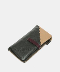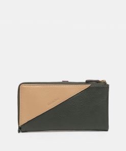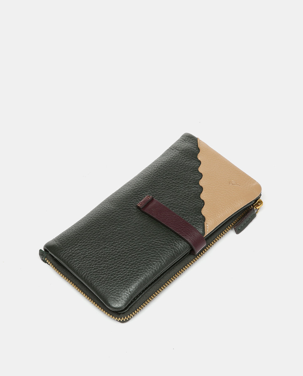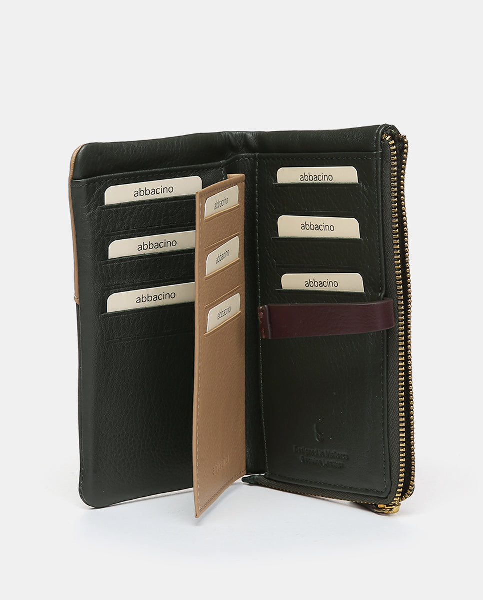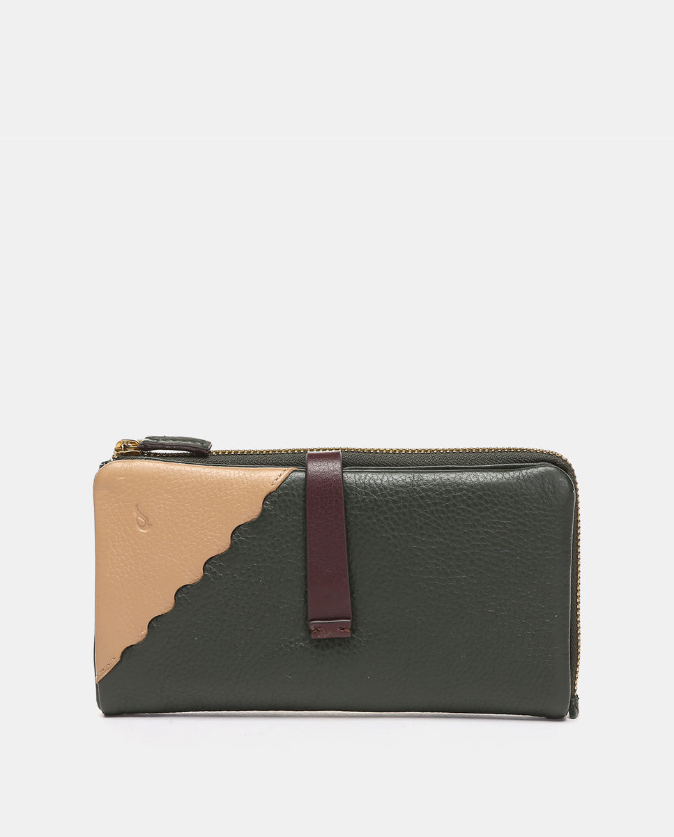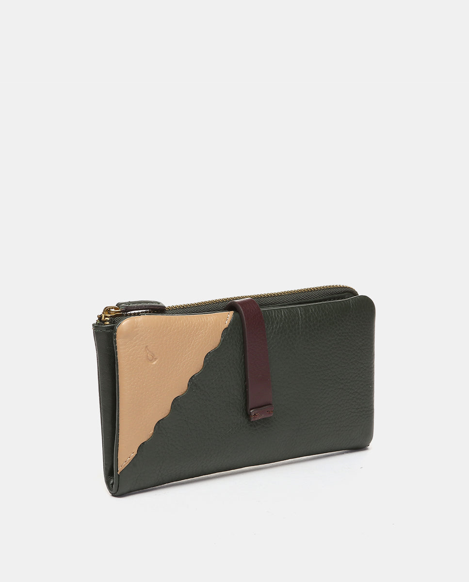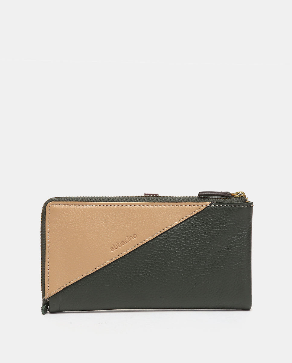 Large women’s wallet made of cowhide leather, combining two shades and featuring a wavy band on the front. Ideal for those looking for capacity and style. Its main features are:
