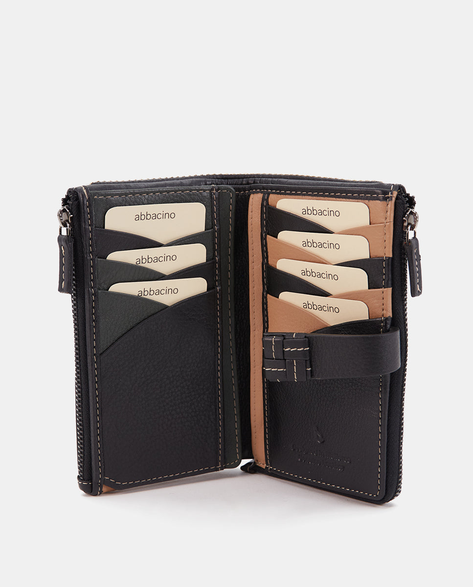 Medium women’s wallet made of premium leather, with a simple, minimalist design that easily matches any bag. Perfect for those seeking elegance and functionality. Its main features are: