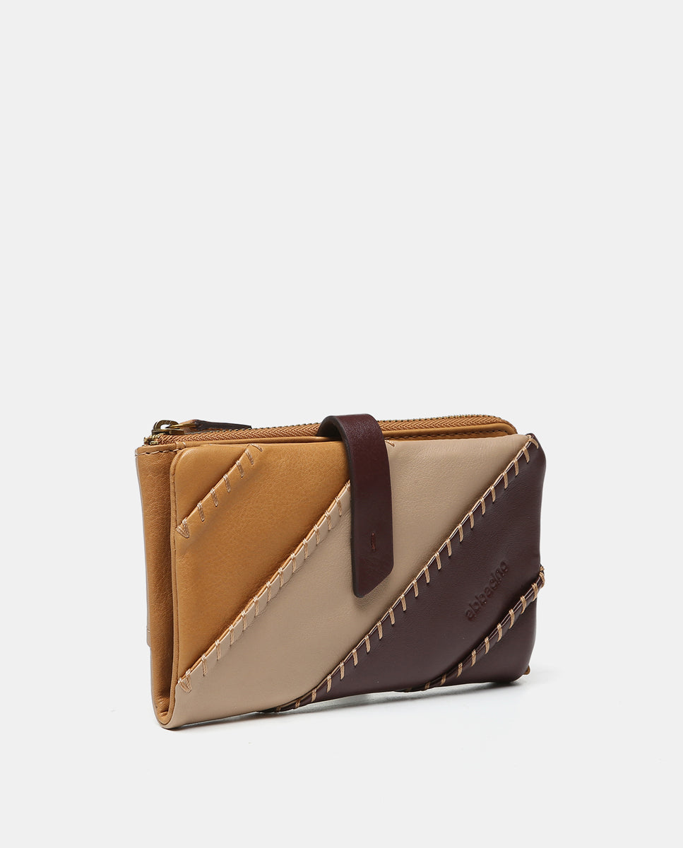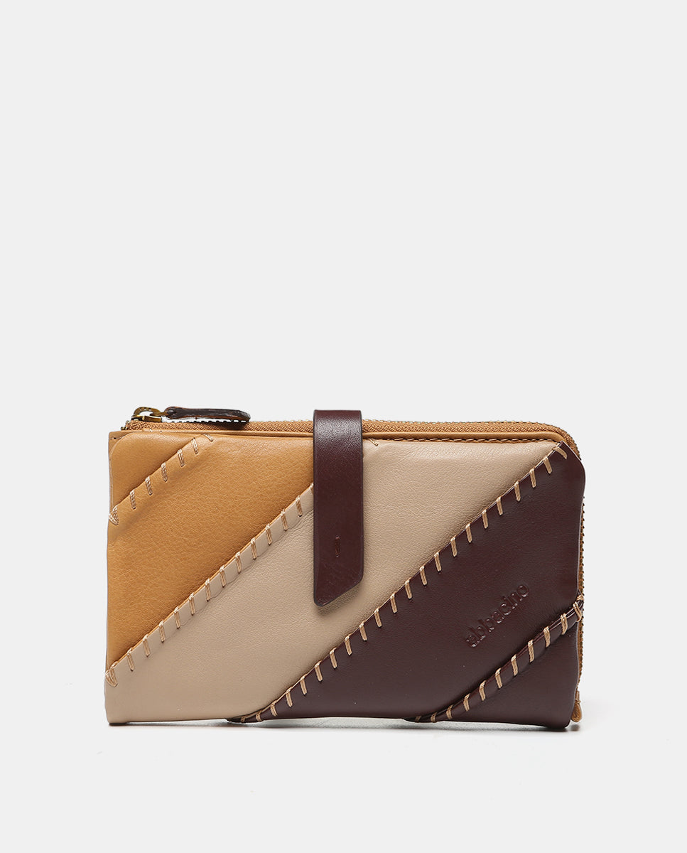 Women’s medium-sized wallet made of premium leather, featuring a combination of various patchworks in different shades that complement each other harmoniously. Compact and functional, it’s perfect for those seeking style and organization. Its main features include: