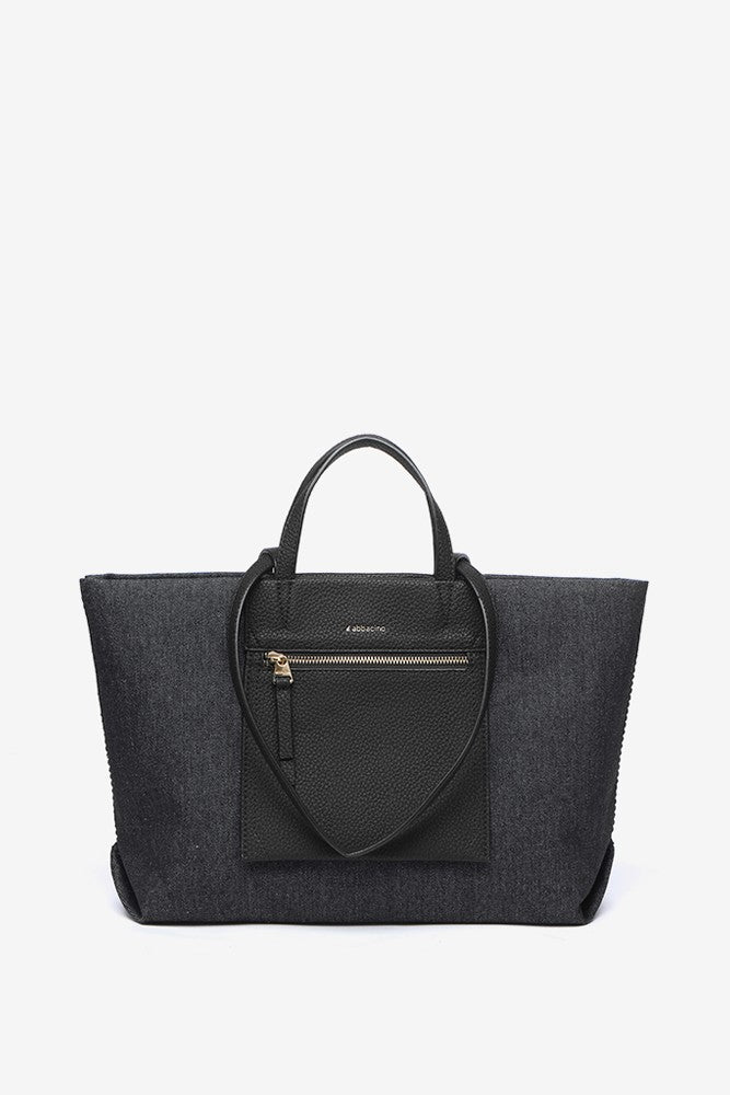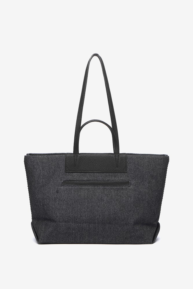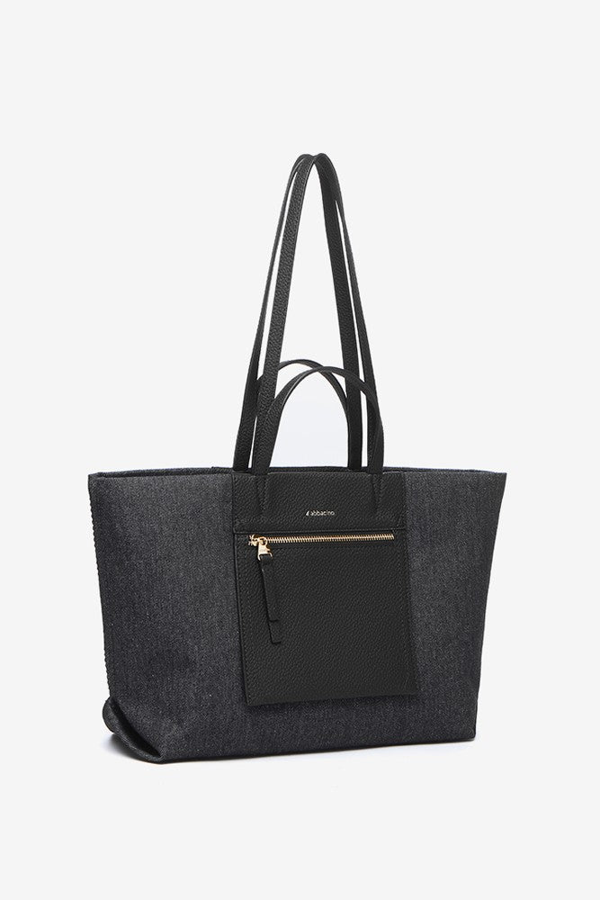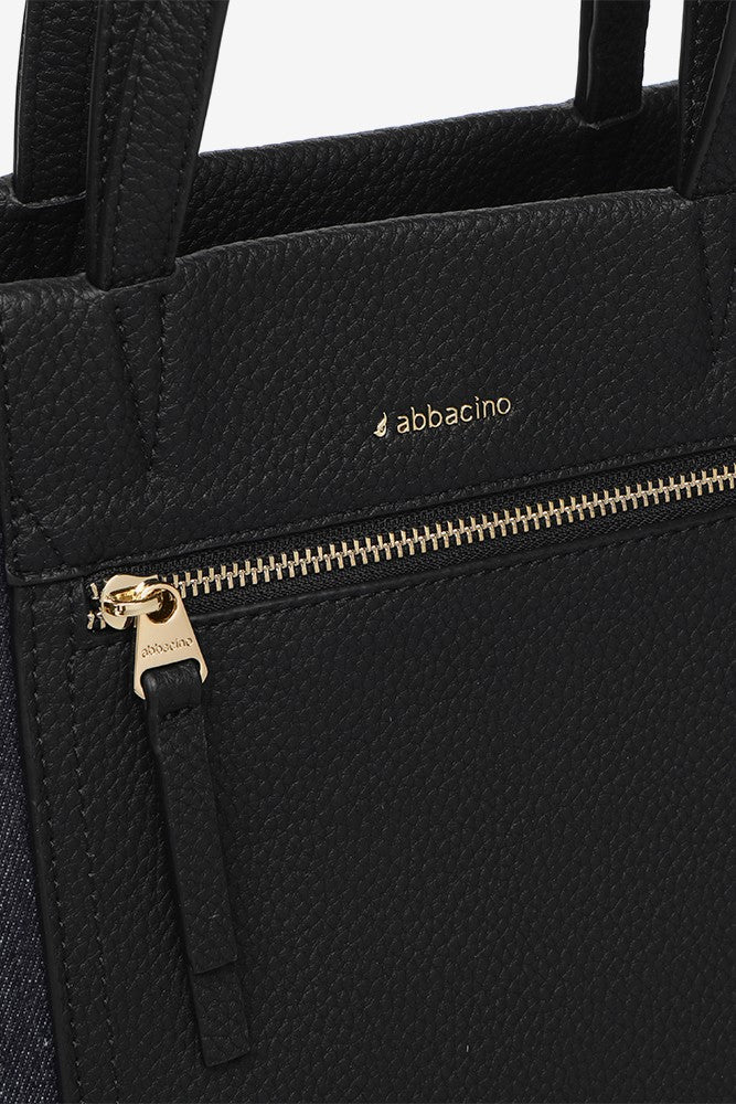 Urban style shopper bag crafted from denim fabric. A model created with a combination of textile and synthetic leather. It is a very casual and original accessory, perfect for adding a relaxed vibe to your daily styles. Its main features are: