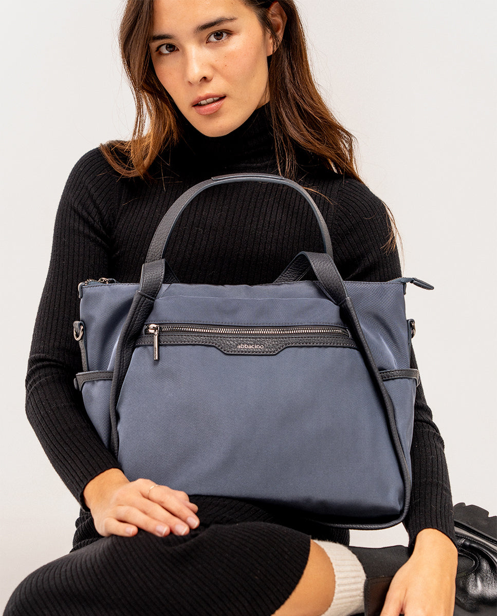 Women’s shopper bag made from recycled fabric, with a spacious, comfortable, and sporty-casual design, ideal for everyday use. Functional and versatile, it’s perfect for those looking for practicality without sacrificing style. Its main features are: