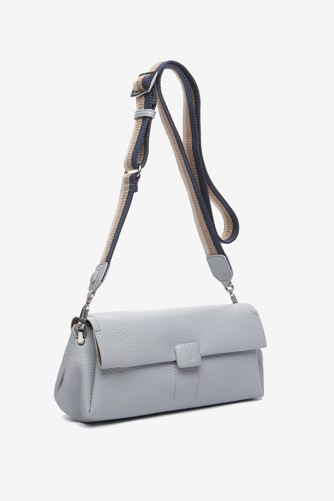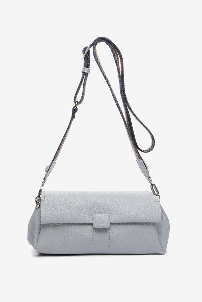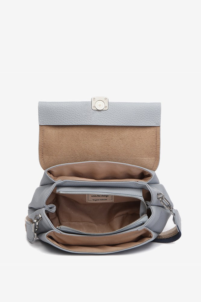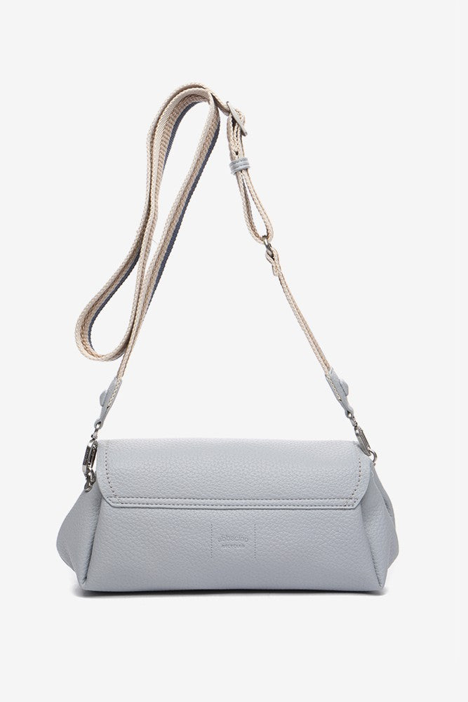Rectangular women’s crossbody bag crafted with recycled materials and dyed in pastel tones. A very simple model, with straight and minimalist lines. Its main features include: