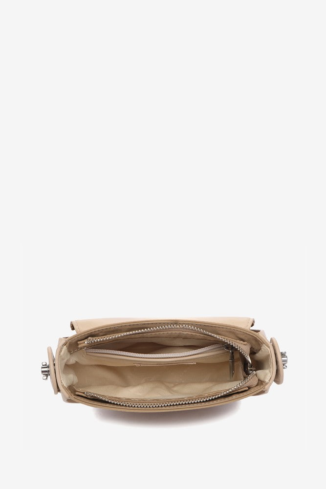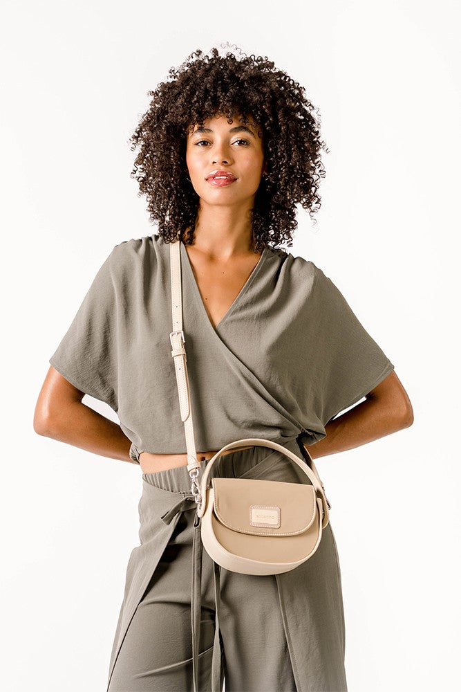 Small women’s crossbody bag crafted with recycled materials and featuring a subtle satin finish inherent to its fabric. An all-terrain, casual-style model ideal for daily use. Its main features include: