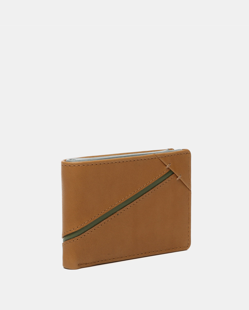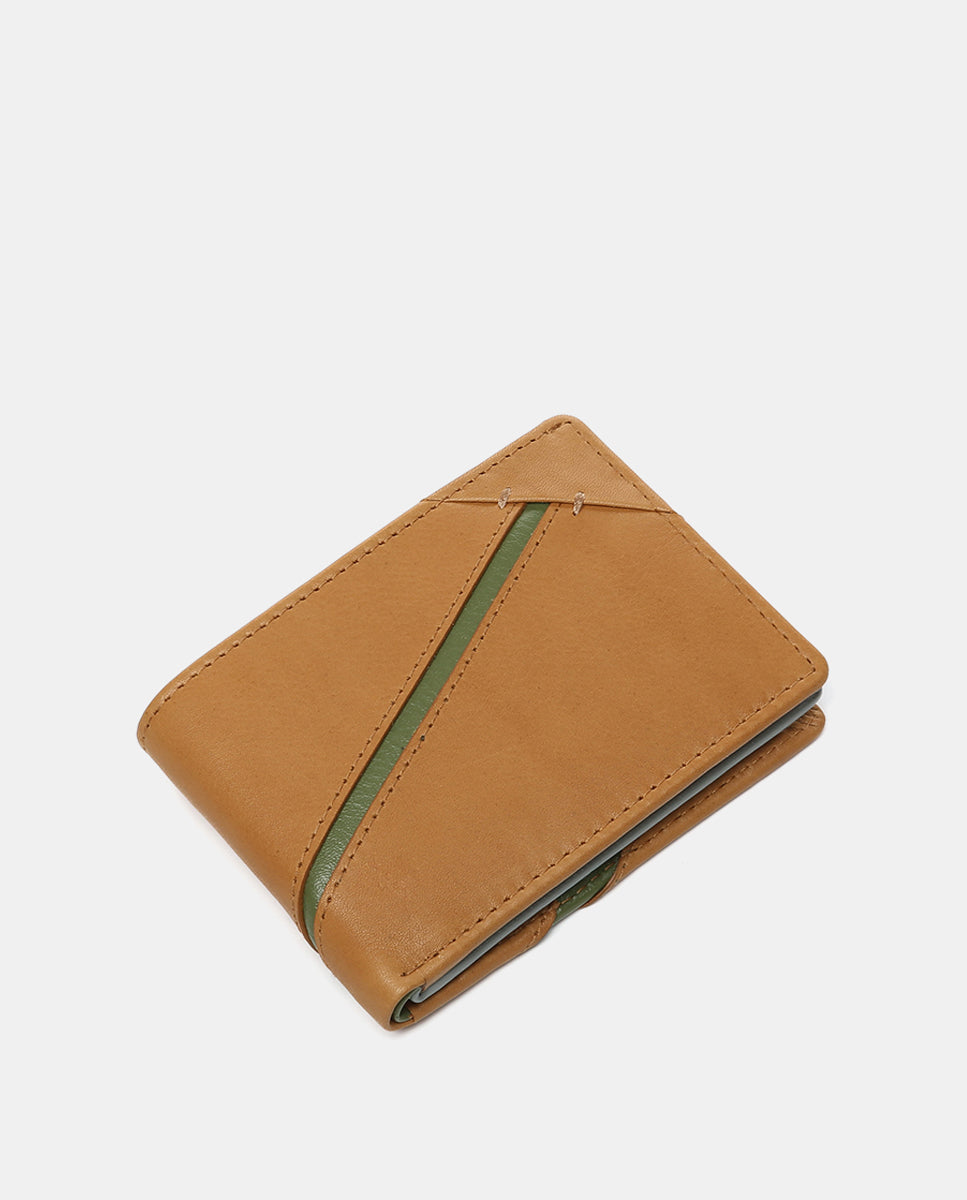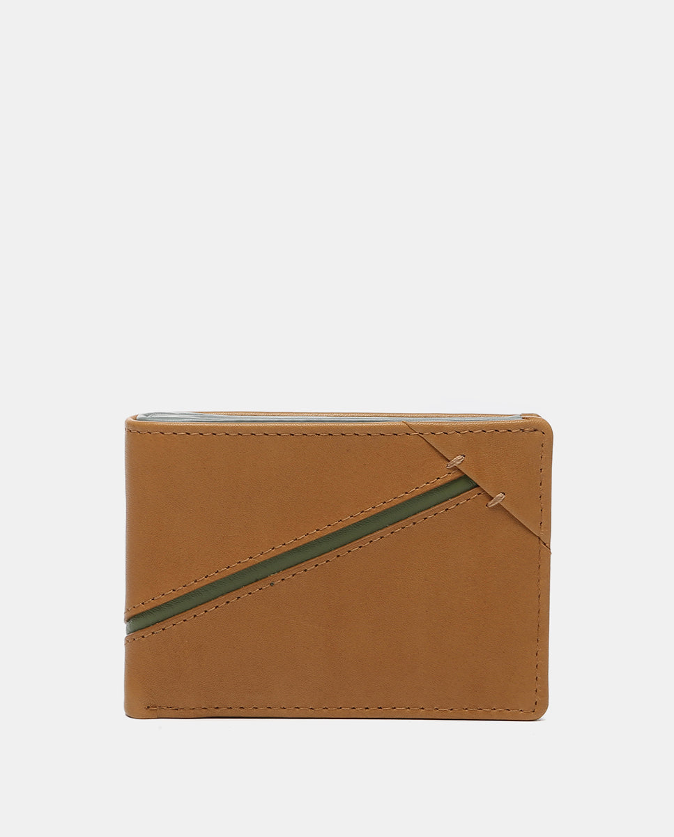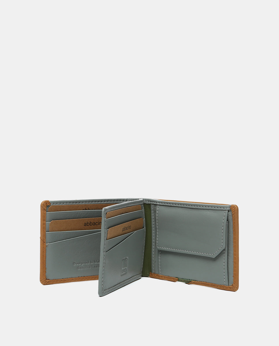 Small men’s wallet made of cowhide leather. Its exterior features a fine color stripe that contrasts with the main tone. A very practical model with several organizational compartments for cards and bills. It also includes an interior coin pocket with a closure. RFID protection system.