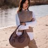 • Adjustable handle decorated with gold hardware for a sophisticated touch.