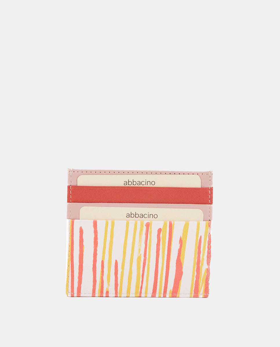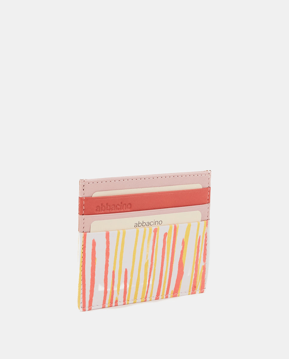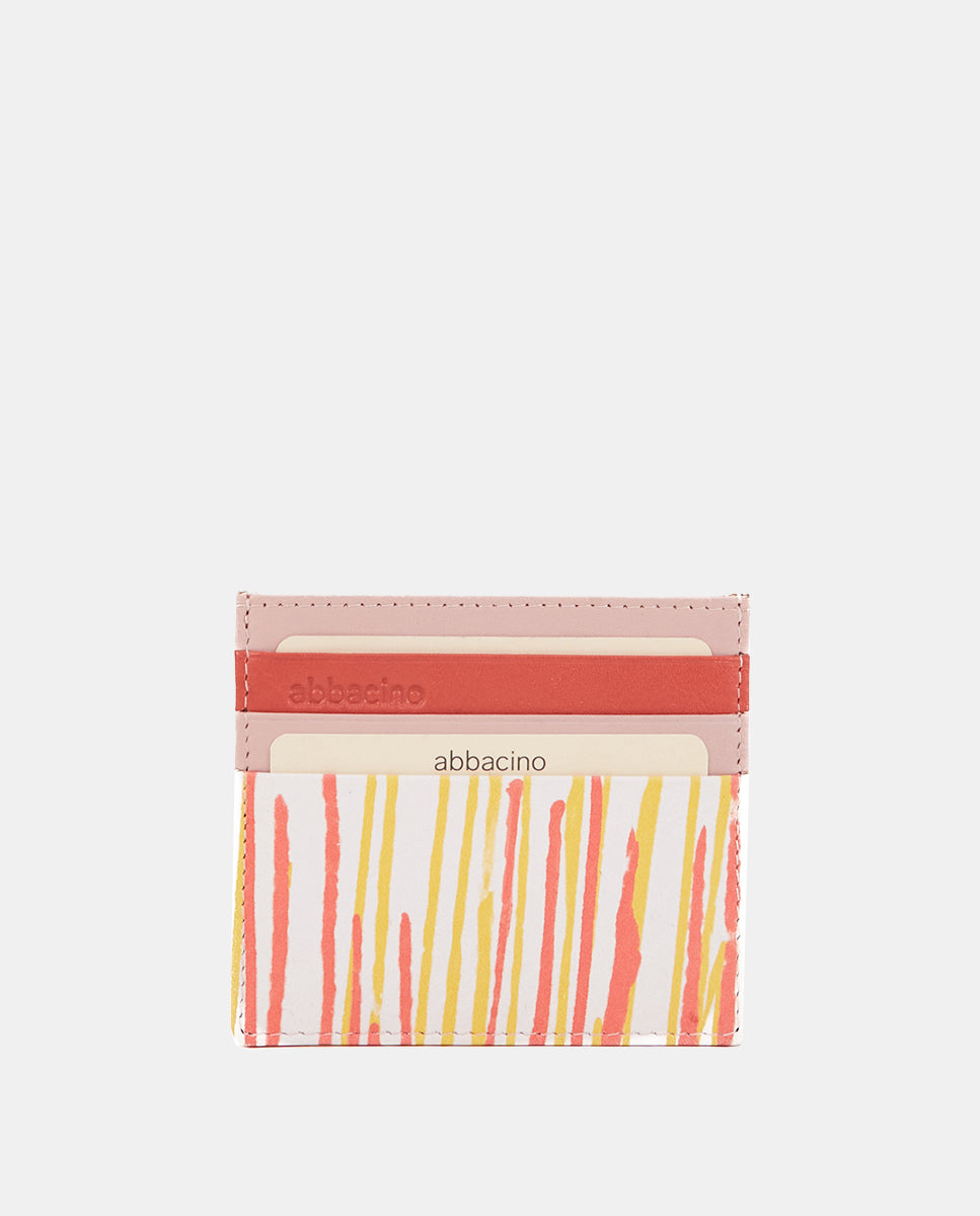 Women’s cardholder made from leather. A design featuring a beautiful striped pattern in fresh, vibrant tones. Its main features are:
