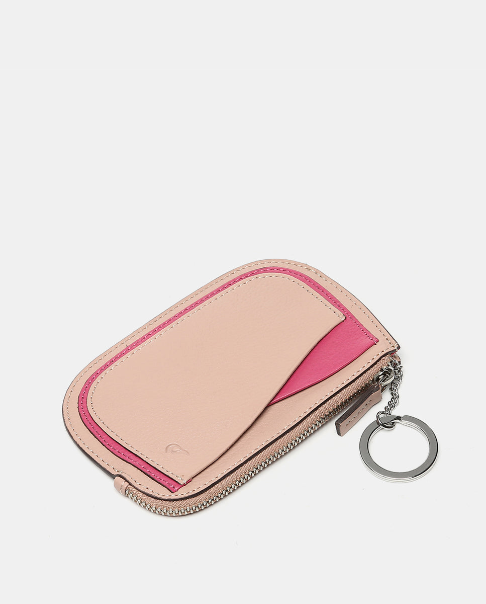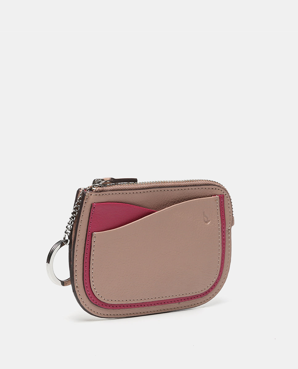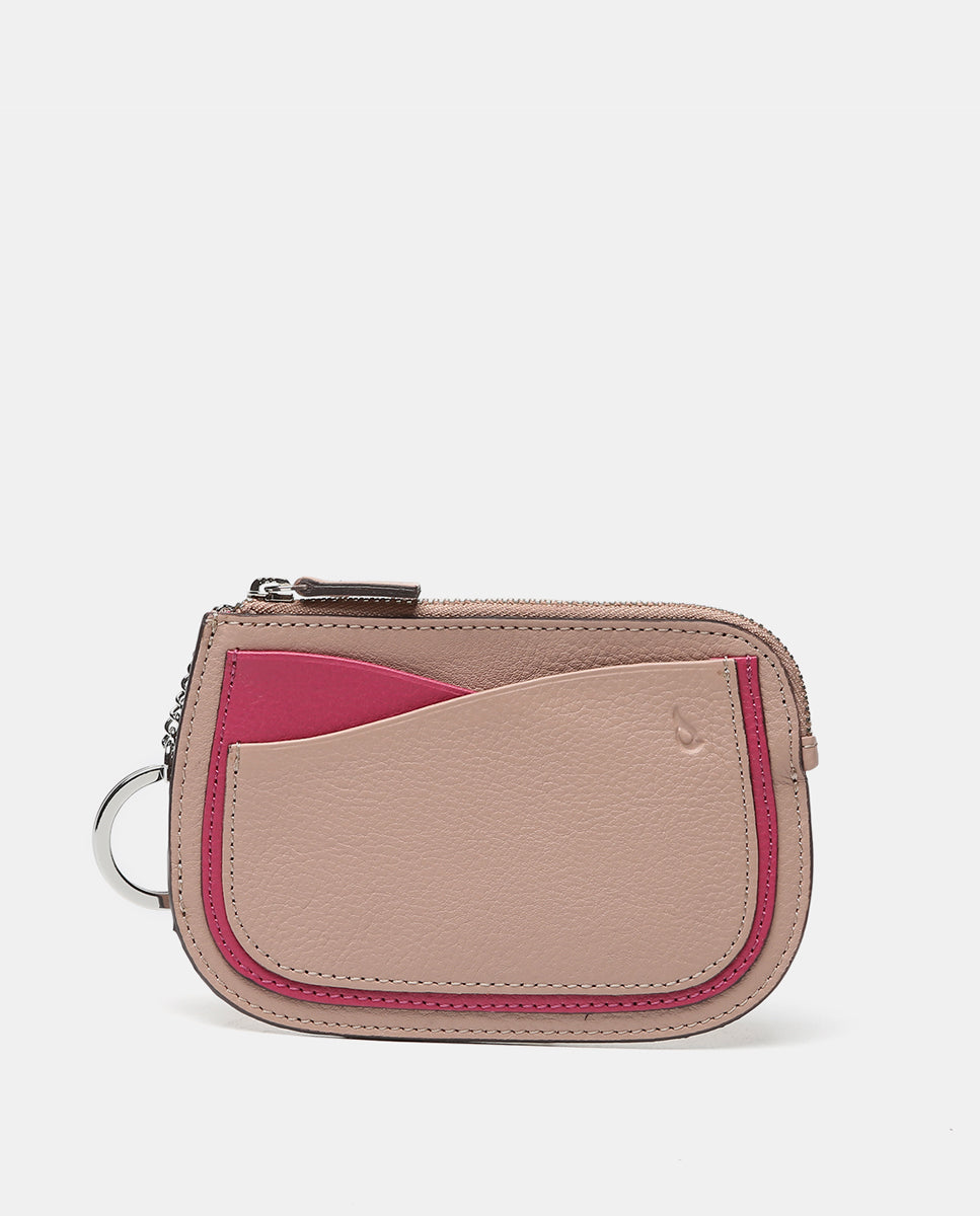Women’s coin purse made of leather featuring a fine curved stripe that matches the main tone of the accessory. Its bright and refreshing colors are perfect for summer days. Its main characteristics are: