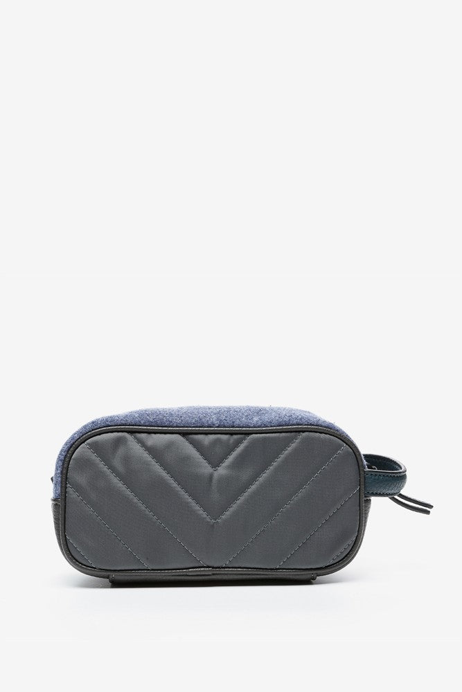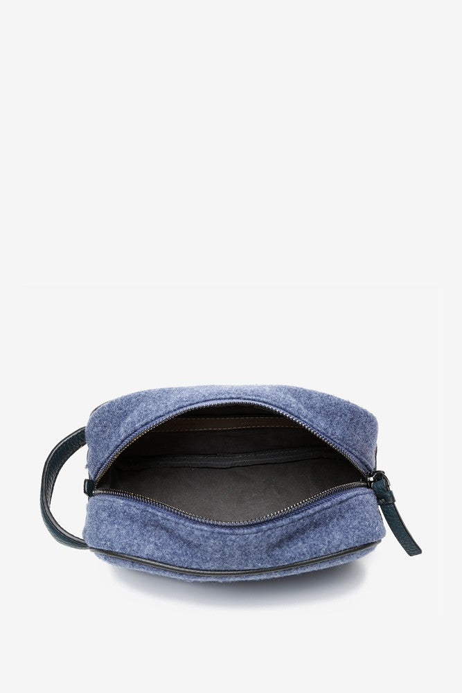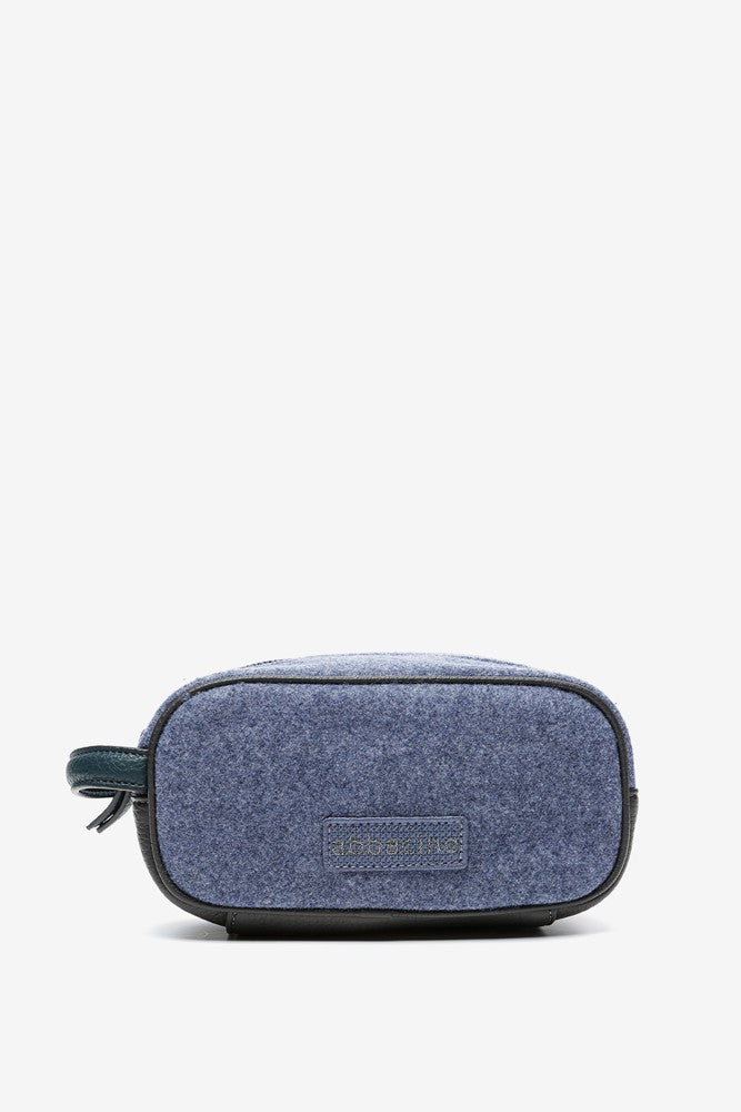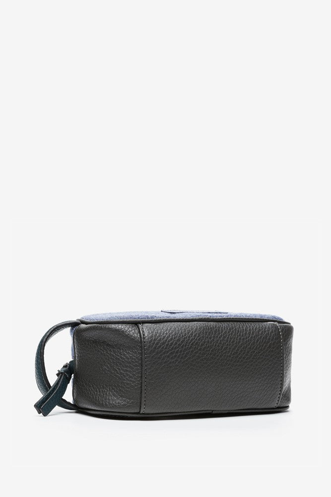 Women’s cosmetic bag with hand strap made from a combination of felt and synthetic leather. An essential accessory to accompany you on your weekend getaways or business trips, take it with you wherever you go, whether in your suitcase or in your handbag. A spacious model in which you can store keys, coins, cards, pens and even cosmetics.