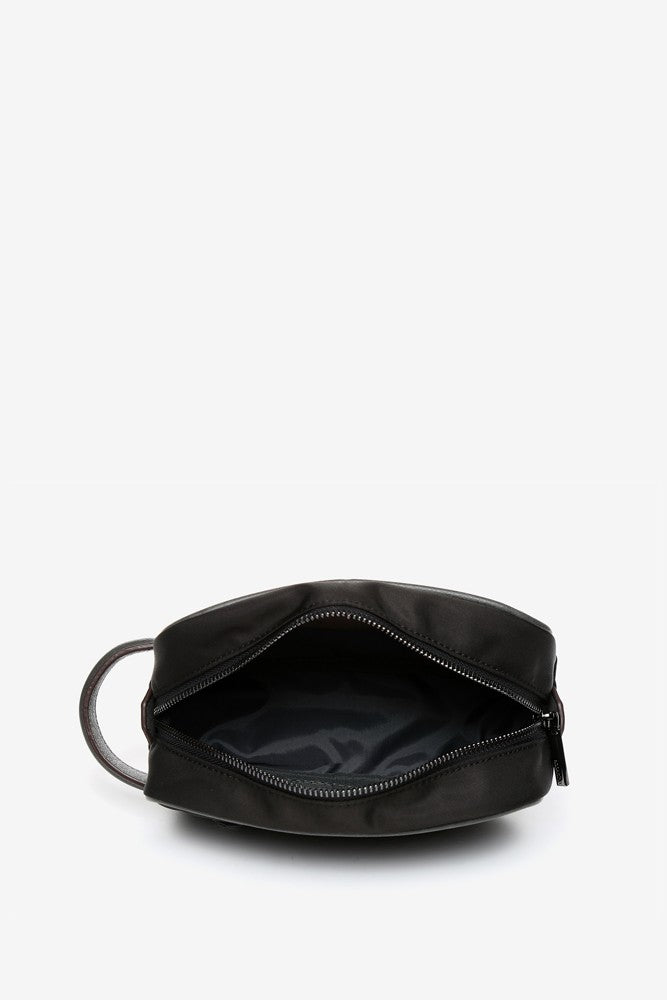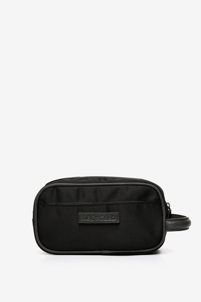 Women’s cosmetic bag with hand strap, made of recycled materials and using processes that advocate sustainability. An essential accessory to accompany you on your weekend getaways or business trips, take it with you wherever you go, whether in your suitcase or in your handbag.