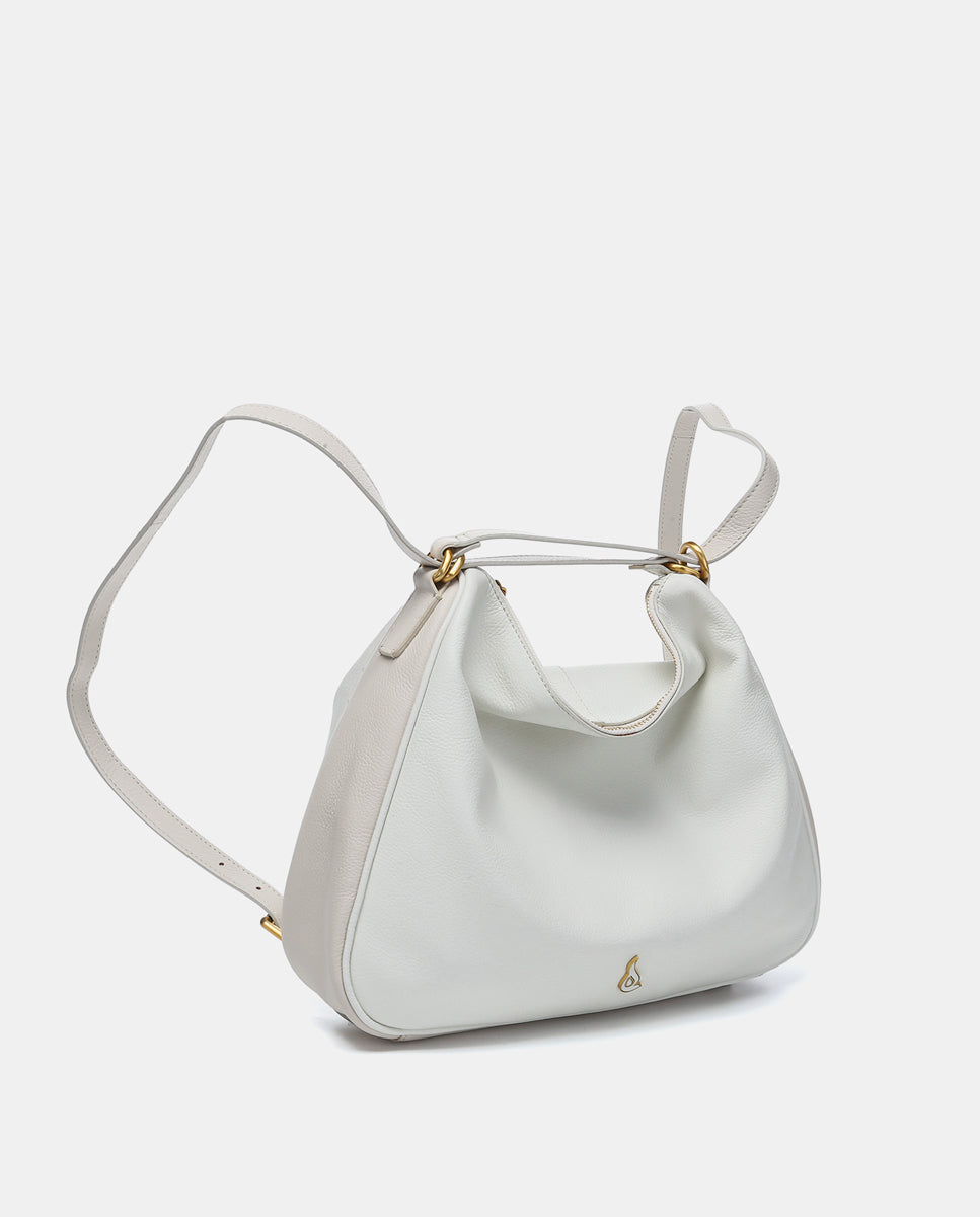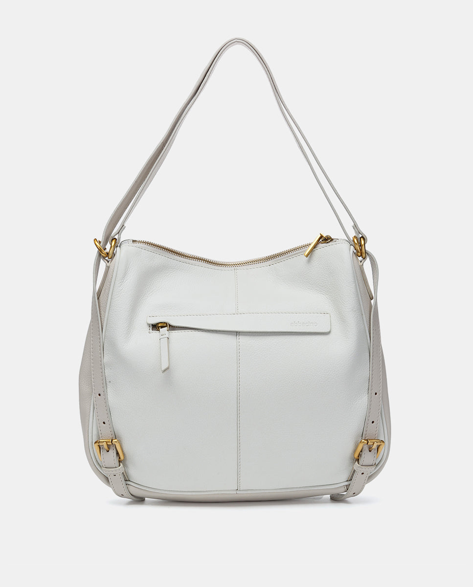 Shoulder bag convertible into a backpack made of premium leather. A spacious and highly practical design, as its shoulder strap is combined with side straps to easily convert the bag into a backpack. Fluid, versatile, and dyed in versatile colors, it will become the perfect companion for your daily activities. Its main features are: