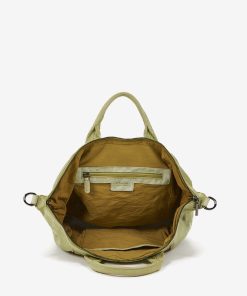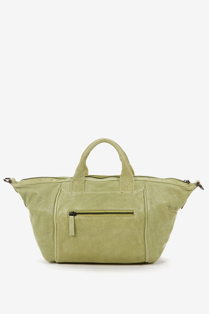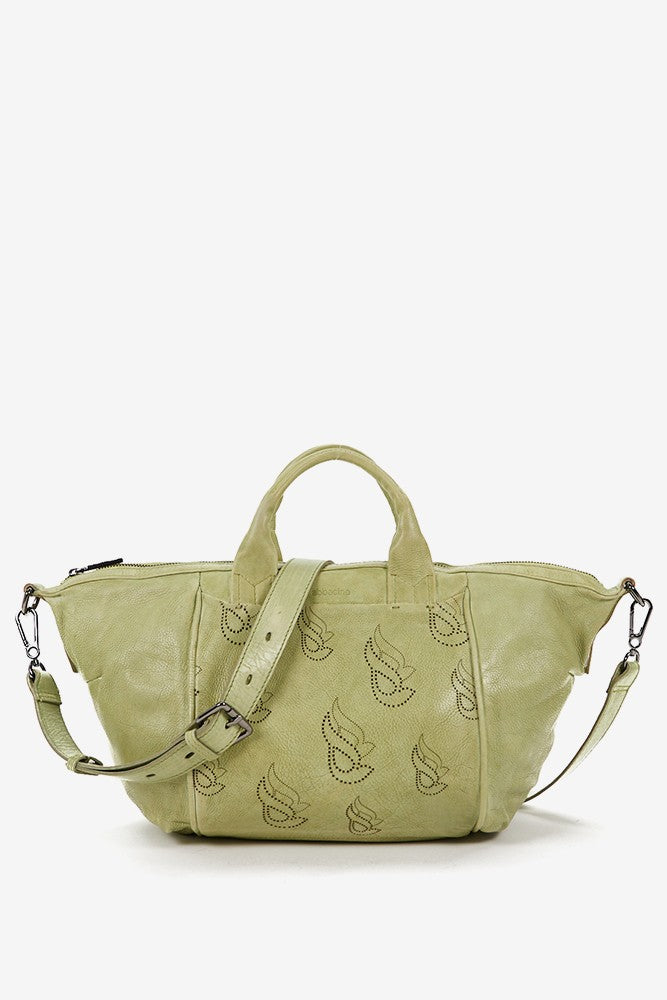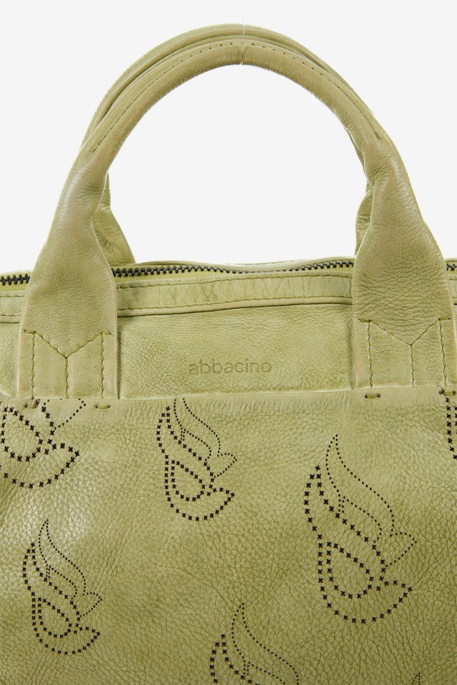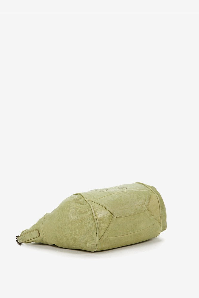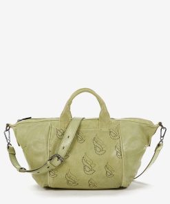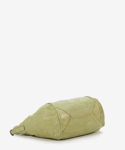 A bowling bag crafted in premium leather. A design that stands out for its die-cut with the brand’s logo on the beautiful washed leather effect. An original choice for this new season. Mediterranean-inspired, this is a loose-fitting model with a very special aesthetic.